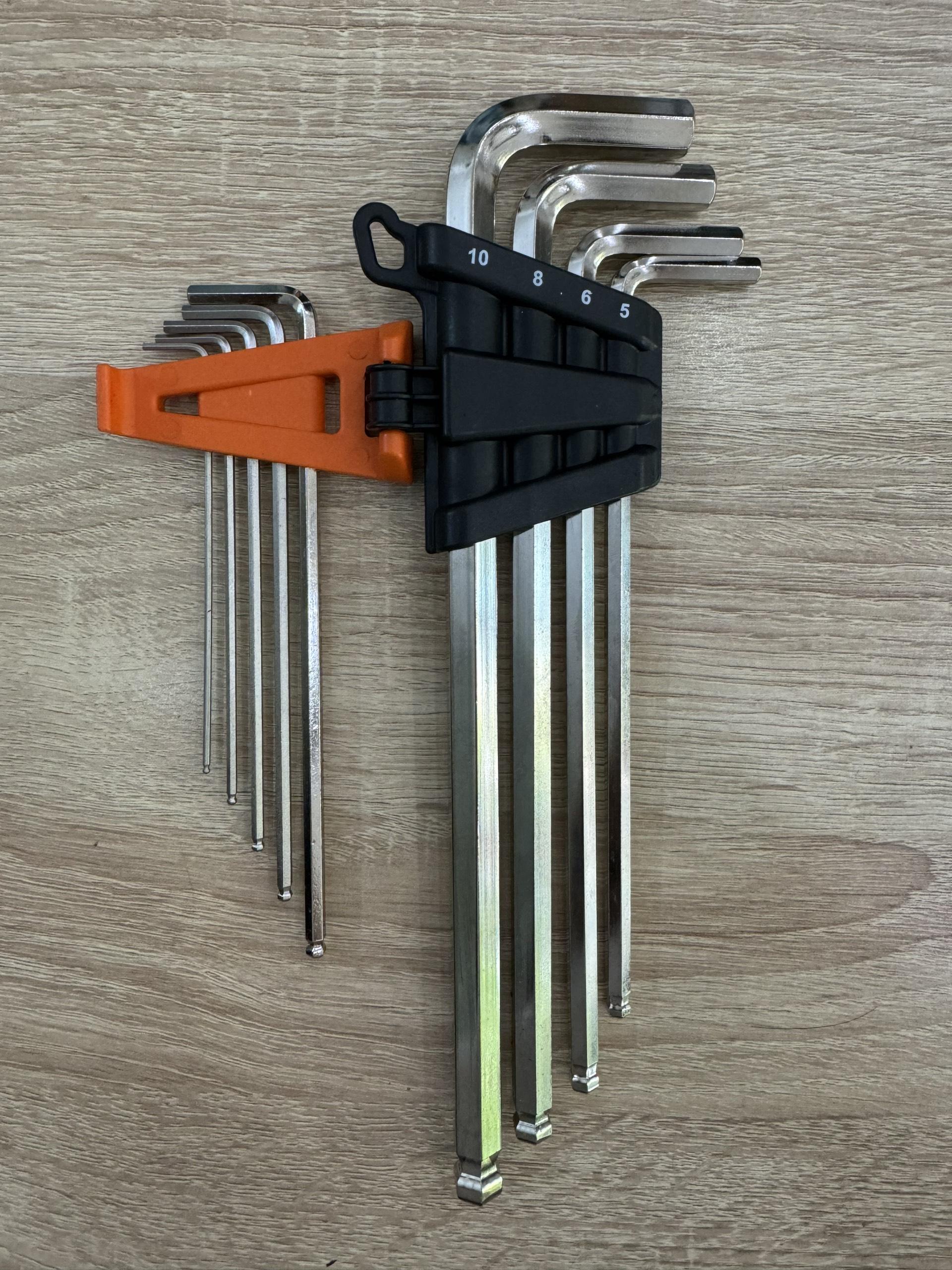 Mua tại TiktokBộ lục giác đầu bi dài 9 chi tiết Retta -RAT5009 Thổ Nhĩ Kỳ Model:RAT5009 Bộ lục giác bao gồm 9 chi tiết đầu bi với đường kính đa dạng: 1.5mm, 2mm, 2.5mm, 3mm, 4mm, 5mm, 6mm, 8mm, 10mm. Nhờ vậy mà người dùng có thể sử dụng sản phẩm để vặn tháo nhiều loại bu lông, ốc vít khác nhau, gia tăng tính ứng dụng của sản phẩm. Bộ lục giác đầu bi được xếp gọn trong một vỉ nhựa có thể mở ra hoặc xếp gọn vào. Vật liệu chế tạo và đường kính vặn đều được dập chìm rõ nét trên mỗi cây lục giác giúp người dùng không mất thời gian đi tìm các cây lục giác có kích cỡ tương ứng. Thiết kế nhỏ gọn của sản phẩm cũng thuận tiện để cất gọn gàng vào trong túi xách, hộp đồ nghề khi không sử dụng.