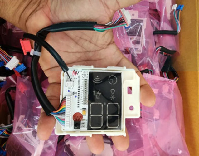 - Mã linh kiện: EBR83323104 Bo mạch mắt nhận máy lạnh điều hóa là bộ phận nhận tín hiệu từ remote báo về IC những chương trình mạch hoạt động. Nếu mặt nhận máy lạnh điều hòa bị hư hỏng thì dù remote đang hoạt động bình thường thì bạn vẫn không thể điều khiển được máy lạnh. Lúc này, cần phải thay thế bo mạch mắt nhận cho máy lạnh điều hòa. Model sử dụng: V10APH, V13APH, V10API, V13API, V18API, V24API, V13APX, V10ENE, V10ENF, V10ENO, V13ENE, V13ENF, V13ENH, V13ENO, V13ENS, V18ENE, V18ENF, V24ENE, V24ENF,…