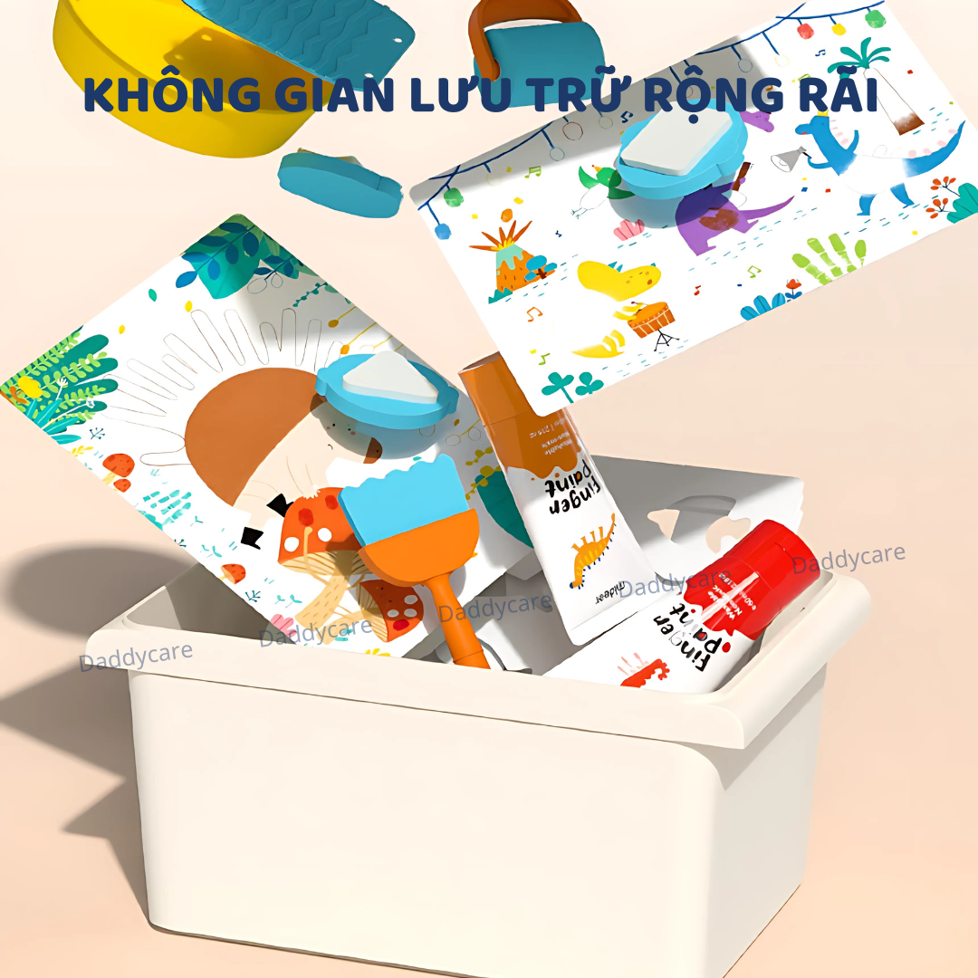 - Thiết kế khóa dán tiện lợi: Đóng mở nhanh chóng, bền bỉ theo thời gian. Bộ màu kèm dụng cụ chính hãng Finger Paint Mideer an toàn cho bé