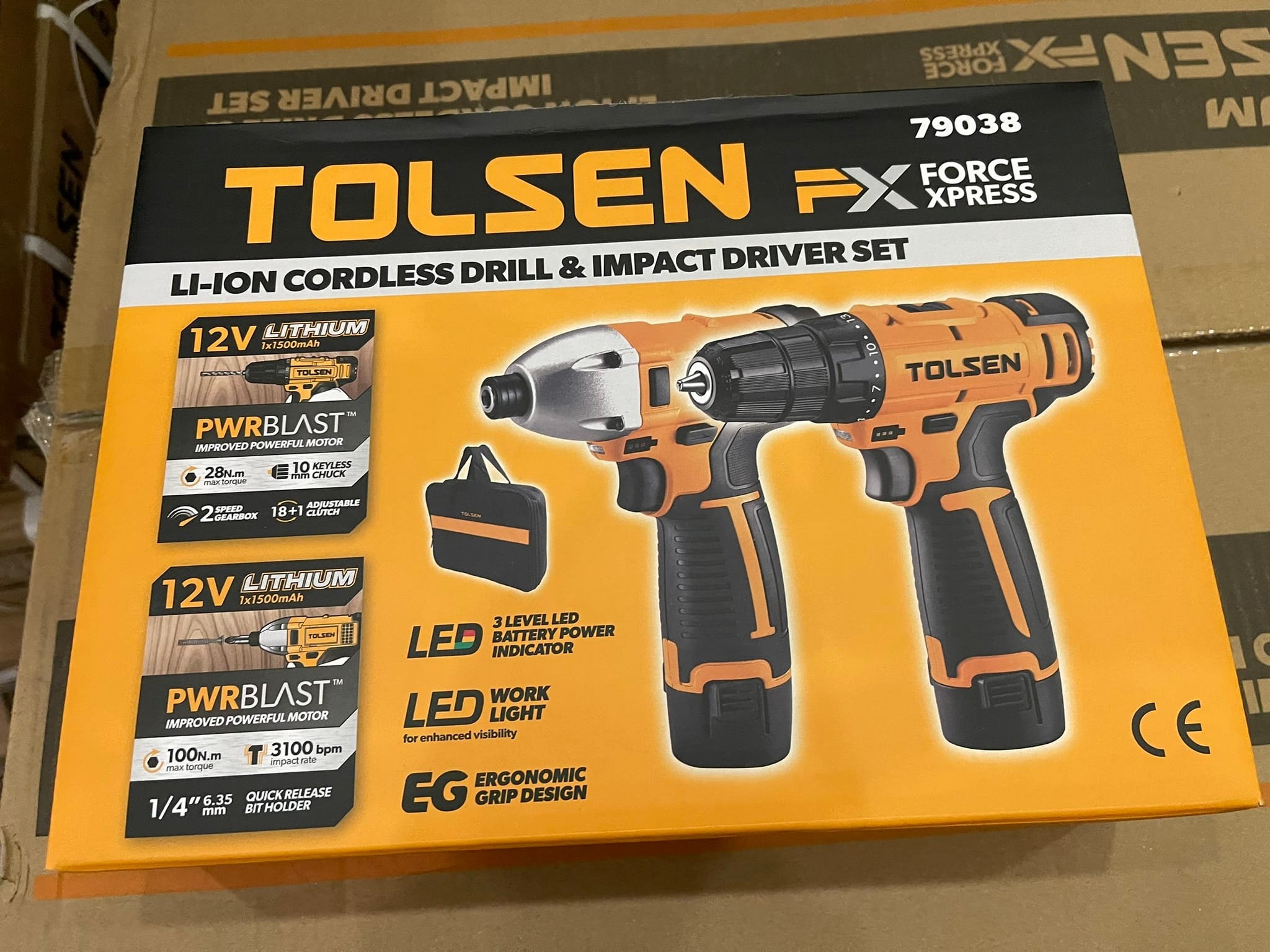 ✨BỘ MÁY KHOAN VÀ BẮT VÍT PIN 12V TOLSEN 79038 (2 PIN, 1 SẠC) - HÀNG CHÍNH HÃNG