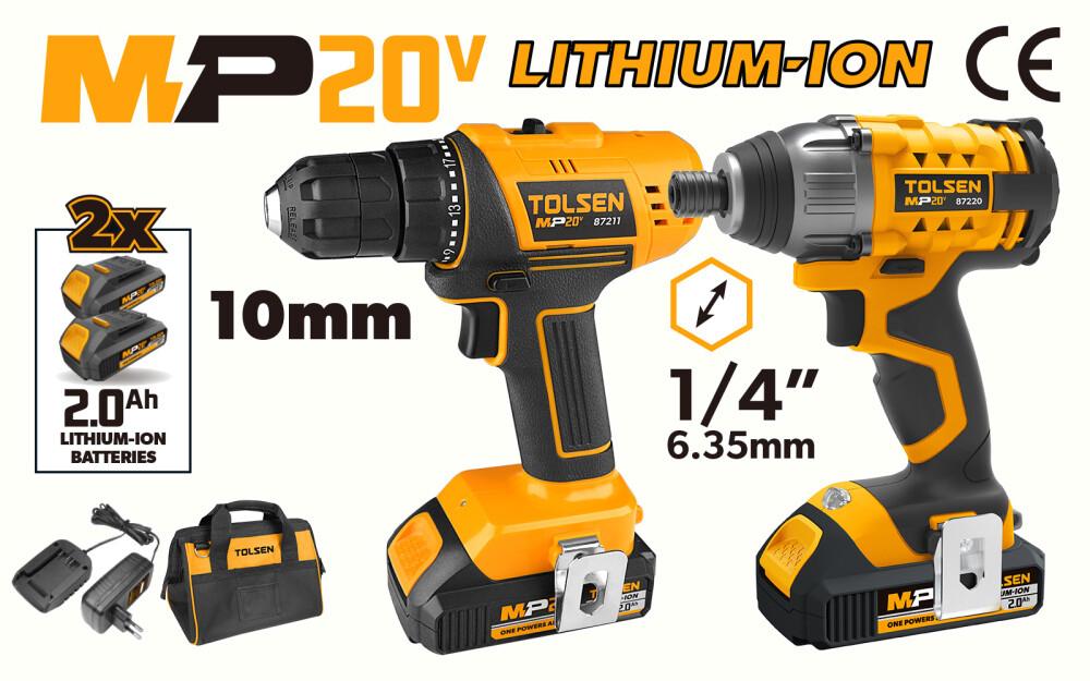BỘ MÁY KHOAN VÀ MÁY BẮN BULONG PIN 20V TOLSEN 87239 - HÀNG CHÍNH HÃNGBỘ MÁY KHOAN VÀ MÁY BẮN BULONG PIN 20V TOLSEN 87239 - HÀNG CHÍNH HÃNG