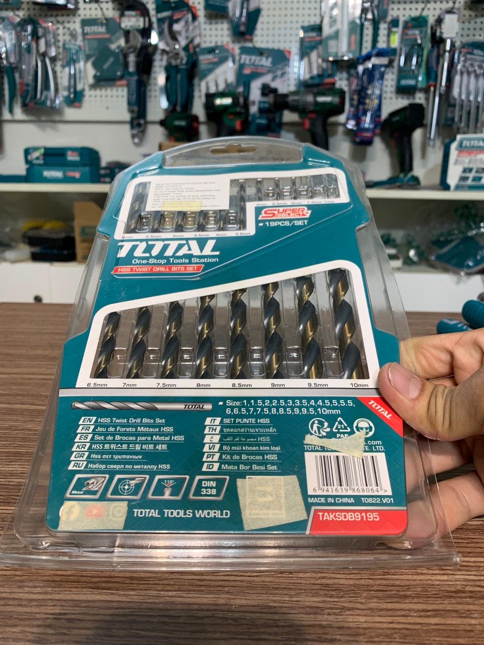 -Bộ 19 mũi khoan xoắn HSS. Kích thước:1,1.5,2,2.5,3,3.5,4,4.5,5,5.5,6,6.5,7,7.5,8,8.5,9,9.5,10mm