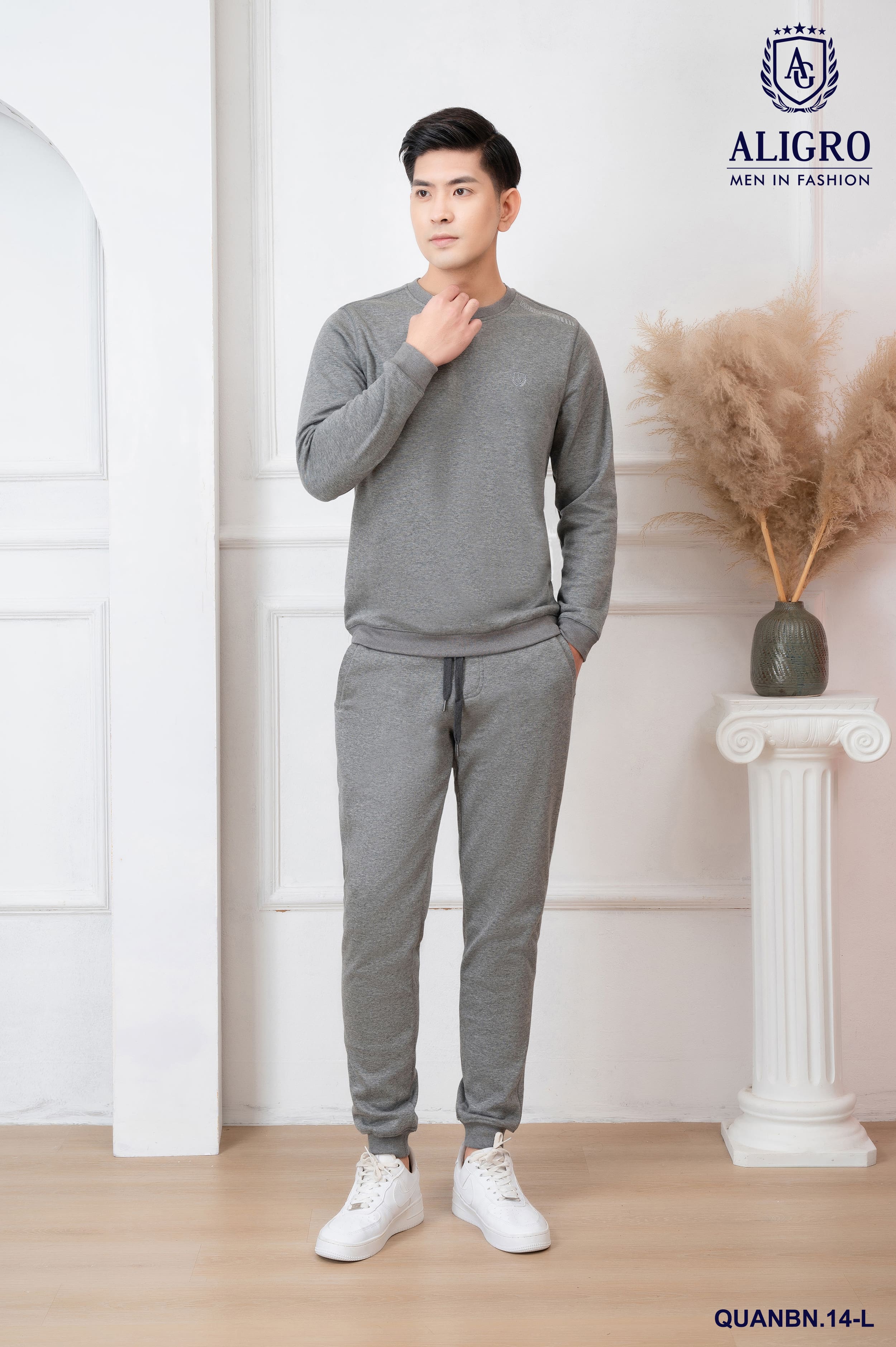 ✨Bộ nỉ cổ tròn màu ghi nhạt ALIGRO BN.14