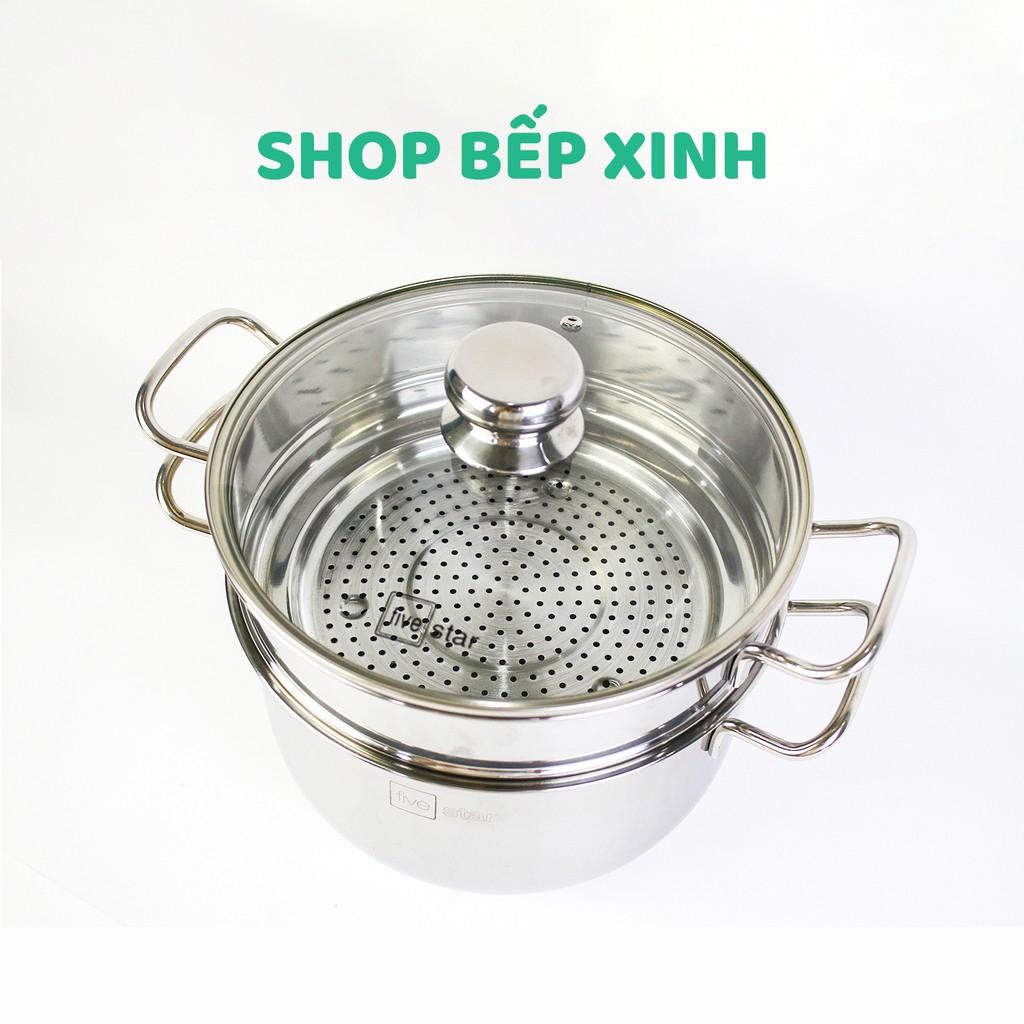 Bộ nồi chảo xửng hấp 3 Đáy Inox 430 cao cấp Fivestar Standard bếp từ nắp kính , tặng 1 vá canh