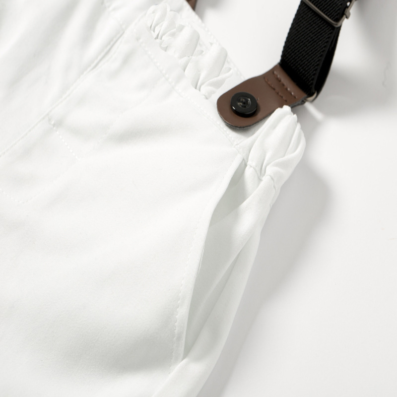 ✨Bộ quần áo sơ sinh bé trai cao cấp, phong cách công tử, sơ mi cộc tay & quần dây đeo, áo cotton mịn mát, quần vải thô dày dặn | MB11