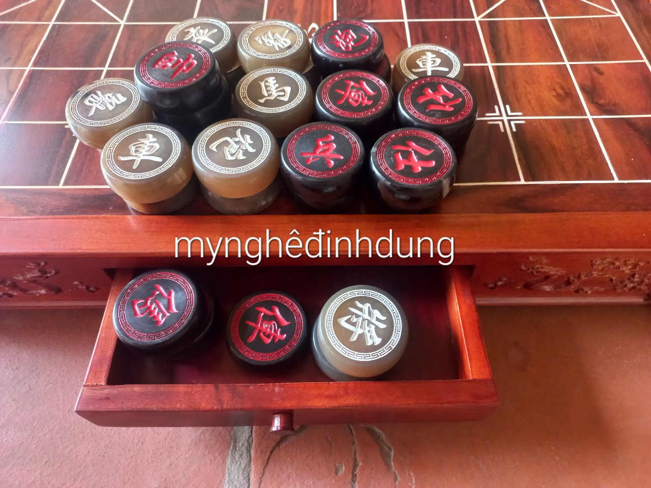 BỘ CỜ TƯỚNG - BÀN CỜ GỖ GÕ ĐỎ CAO CẤP VÀ QUÂN CỜ SỪNG TRÂU NGUYÊN KHỐI - GIÁ XƯỞNG #2300k