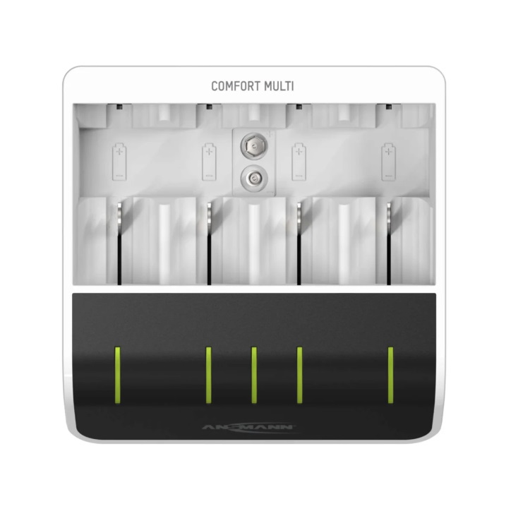 Mua tại TiktokBộ sạc pin Comfort Multi hỗ trợ USB sử dụng công nghệ sạc Perfect 7 của Ansmann Bộ sạc Comfort Multi sạc được các loại pin gồm AAA, AA, C, D và pin 9V bằng công nghệ sạc 7 bước hoàn hảo. Khi lắp pin vào, bộ sạc tự động thực hiện 7 bước trong quá trình sạc pin gồm: