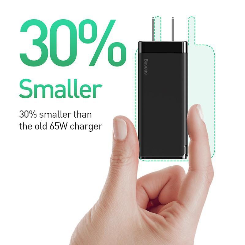 những bộ sạc USB-C và USB-A thế hệ mới được vật dụng IC GaN mang thể được ngoài mặt sở hữu kích thước nhỏ hơn phần đông. một bộ sạc GaN sở hữu kích thước chỉ tương đương bộ sạc điện thoại thông minh giờ đây mang thể thuận lợi cung ứng năng lượng cho những vật dụng lớn hơn Tablet/ Laptop/ M ✪✪✪ Sản phẩm hàng hiệu Baseus, bảo hành 12 tháng 1 đổi 1