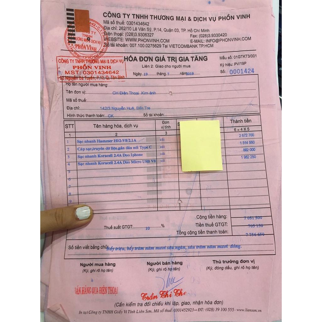 - Dây dài 1 m thuận tiện vừa cắm sạc vừa sử dụng điện thoại một cách thoải mái. **** Thiết kế cao cấp với thương hiệu độc quyền Koracell của Công ty TNHH TM & DV Phồn Vinh hoàn toàn tương xứng với các thiết bị cao cấp khác