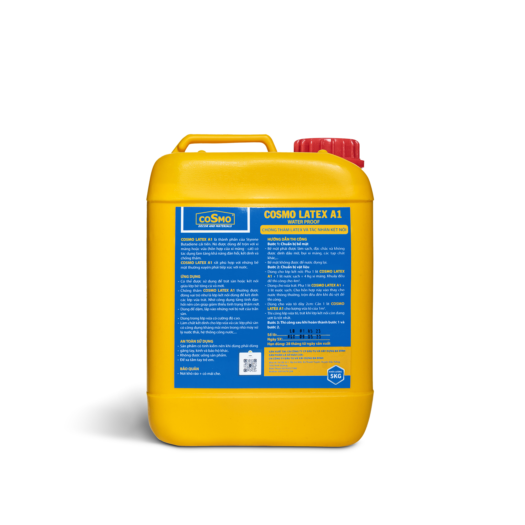 Sử dụng vật liệu chống thấm chuyên dụng là cách hiệu quả để chống thấm sàn,chống thấm tường. Có nhiều loại vật liệu khác nhau để chống thấm, nhưng các loại vật liệu sau đây là phổ biến nhất: • Chất chống thấm: COSMO LATEX A1 là phụ gia nhũ tương Styrene-butadiene cải tiến được sử dụng để trộn với xi măng hoặc vữa xi măng-cát để tăng tính kết dính và chống thấm.  • Chất chống thấm sàn COSMO AT-11 plus là sản phẩm chất lượng cao của hãng COSMO chuyên dùng để chống thấm có tác dụng chống thấm nước hiệu quả cho rất nhiều công trình. • Chất chống thấm tường COSMO AT-11 là sản phẩm chất lượng cao của hãng COSMO chuyên dùng để chống thấm có tác dụng chống thấm nước hiệu quả cho rất nhiều công trình. Chống thấm tường COSMO AT-11 là thành phần của Acrylic Copolymer và các phụ gia khác.
