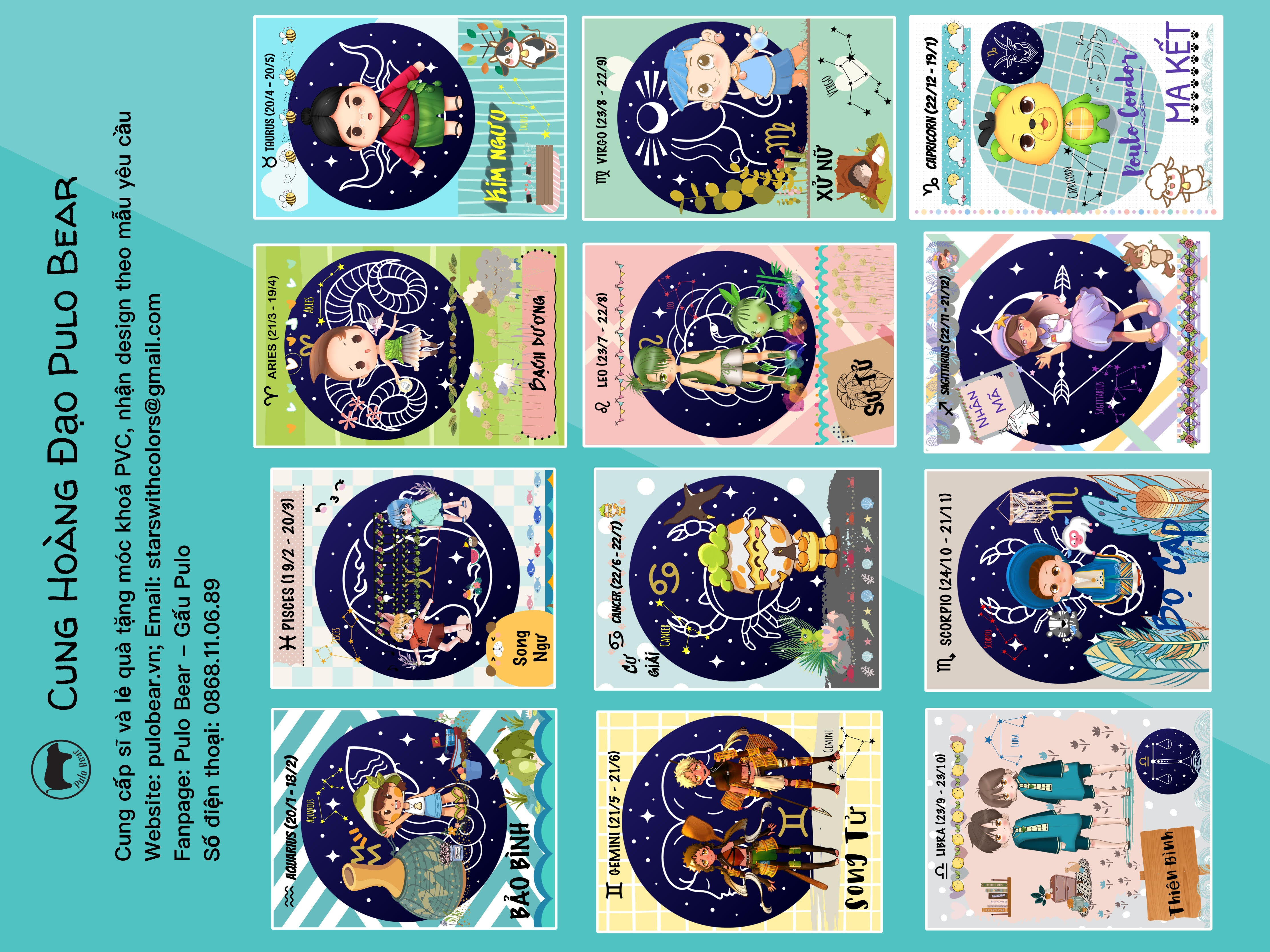 Bộ Sticker Gấu Pulo – Đáng yêu, độc quyền và đầy màu sắc (01 bộ gồm 8 miếng: 02 miếng lớn về chủ đề đảo và Cung Hoàng đạo, 6 miếng nhỏ về chủ đề