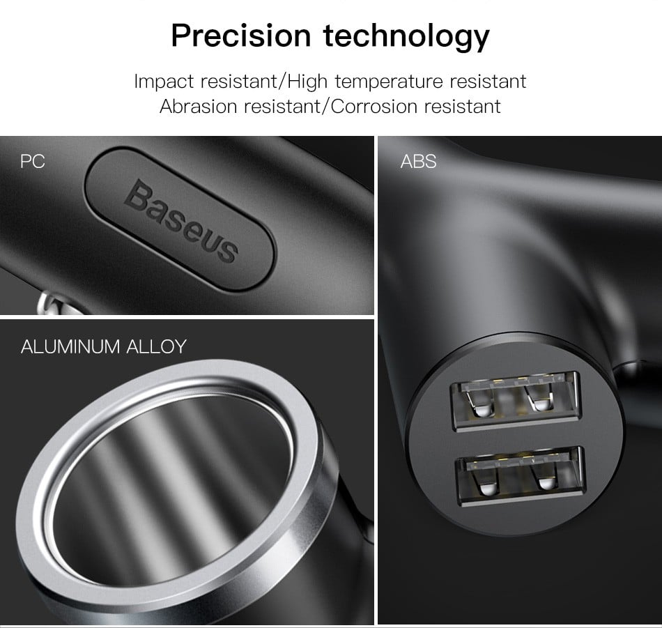 Tính năng cơ bản Bộ tẩu sạc mở rộng 3 trong 1 dùng cho xe hơi Baseus Y Type Dual USB (40W, 3.4A Fast Charge, Intelligent Car charger)