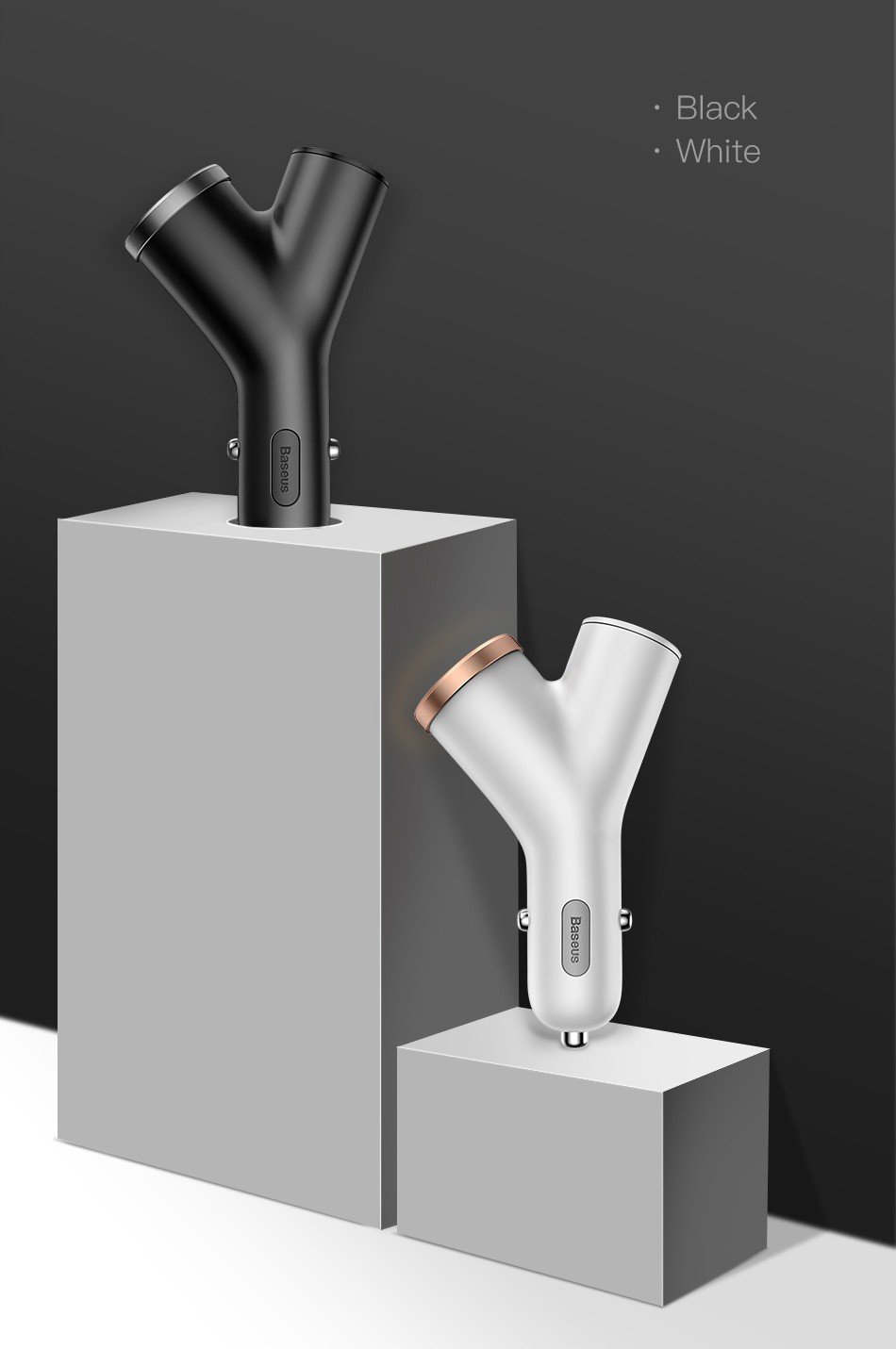 - Bộ tẩu sạc dùng cho xe hơi Baseus Y Type Dual USB có thiết kế dạng bộ chia hình chữ Y, có chức năng mở rộng cổng sạc cho các thiết bị số dùng trên xe hơi .