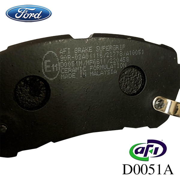 Má phanh trước FORD thương hiệu AFI-BRAKE đến từ tập đoàn AFI Brake Manufacturing Sdn. Bhd. Được thành lập vào năm 1997, D0051M - Má phanh đĩa trước lắp cho các dòng xe sau: FORD