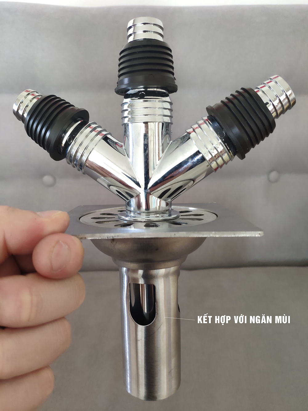 - Silicone chống mùi trào ngược (Nhựa mềm) Lưu ý: Không bao gồm đế thoát sàn Mô tả: Đừng để nước máy giặt, xà phòng máy giặt, nước thải, nước máy lạnh điều hòa, nước khác… chảy lênh láng ra sàn gây rêu mốc, trơn trượt và mất mỹ quan, không những thế còn gây mất vệ sinh, mùi hôi bốc lên từ cống, lâu ngày vi khuẩn tích tụ, là điều kiện để ruồi, muỗi sinh sôi phát triển thành ổ dịch gây bệnh cho trẻ nhỏ, người già và mọi người trong gia đình. Giải pháp: Bộ thoát nước máy giặt, thoát nước thải kiêm chống mùi hôi, ngăn côn trùng trào ngược – Bộ chia 3, MIHOCO 31 Vị trí lắp: bộ thoát nước máy giặt, thoát nước thải kiêm chống mùi hôi trào ngược được Lắp vào thoát sàn có sẵn nơi đặt ống xả thải máy giặt, nơi thoát nước thải ống điều hòa, nơi thoát nước khác Ưu điểm: Thoát nước cùng lúc 3 thiết bị như máy giặt và chậu rửa, nước điều hòa (Hoặc đầu thải khác …) bên cạnh đó nước sàn vẫn thoát được bình thường. Hướng dẫn lắp đặt như Video: Hướng dẫn sử dụng: Lắp bộ này vào thoát sàn sẵn có, gắn đầu ống thải của Máy giặt, chậu rửa… vào đầu nối thoát nước thải vào là được Kích thước Lỗ thoát sàn: Bộ thoát nước máy giặt, thoát nước thải phù hợp với lỗ thoát sàn có đường kính lỗ: Từ 28mm – 55mm (vừa hết các lỗ thoát sàn thông dụng hiện nay) 1 bộ gồm: