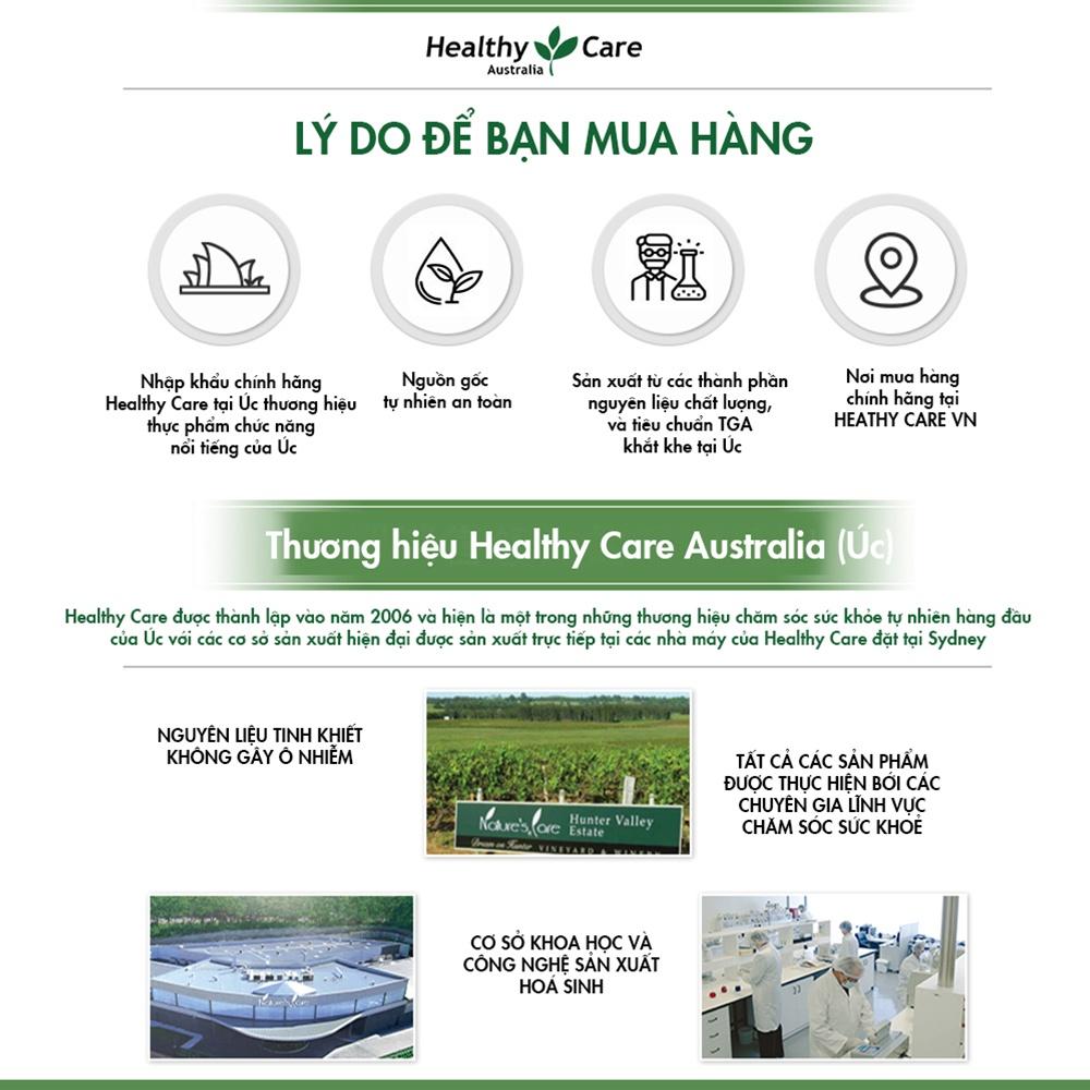 - Nếu đang dùng bất cứ loại thuốc hoặc thực phẩm chức năng khác, vui lòng tham khảo ý kiến bác sĩ trước khi dùng. HEALTHY CARE VIỆT NAM cam kết phân phối sản phẩm 100% chính hãng. Hỗ trợ đổi trả trong vòng 07 ngày nếu sản phẩm gặp các vấn đề lỗi từ phía nhà sản xuất, sản phẩm gặp vấn đề trong quá trình vận chuyển.
