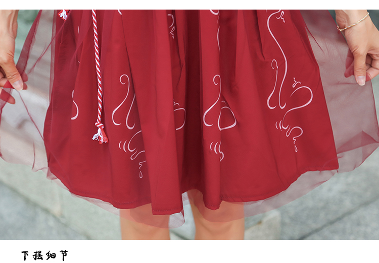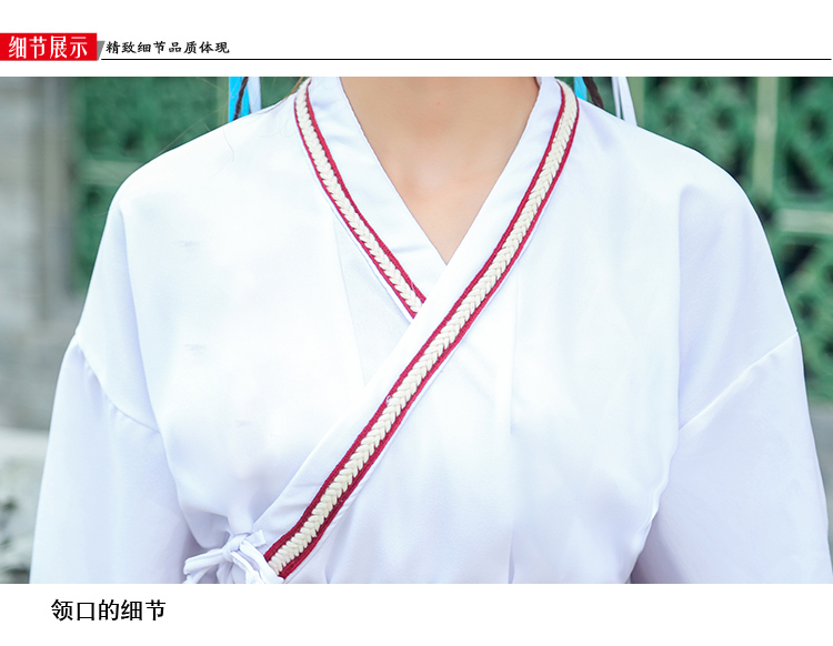 Kiểu dáng: trang phục Hán Phục cách tân Màu sắc: Áo màu trắng, Đầm màu đỏ Kích thước: Freesize (Vòng ngực 92cm, Áo dài 49cm, Tay dài 48cm, Váy dài 58cm) Bộ sản phẩm: gồm