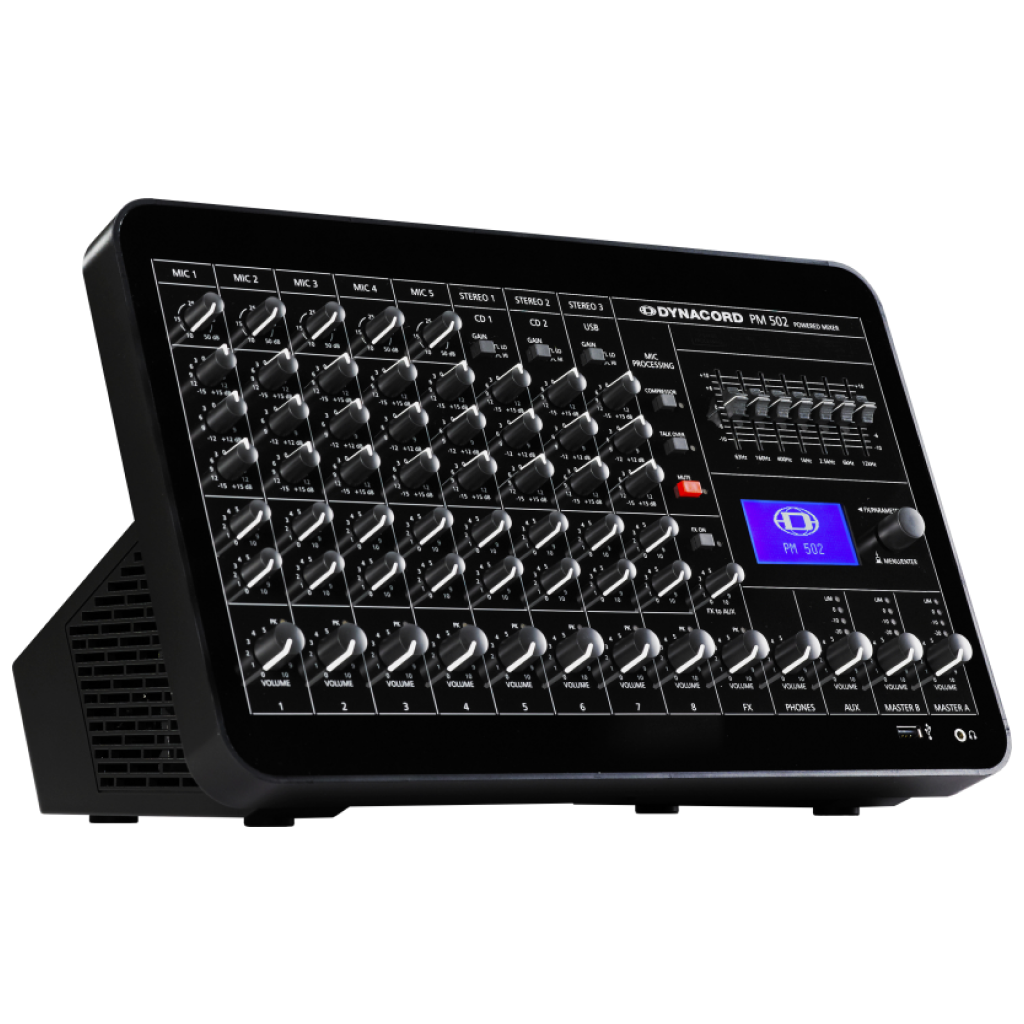 - Cấu trúc đầu vào, cùng với toàn bộ gói tính năng và khả năng kết nối, đặt bộ trộn này vào vị trí trung tâm của nhiều cơ sở lắp đặt. Hơn nữa PM 502 là một công cụ cực kỳ linh hoạt cho vô số ứng dụng trực tiếp. Đây sẽ là lựa chọn lý tưởng cho những nghệ sĩ giải trí, DJ và các ban nhạc nhỏ đang tìm kiếm một giải pháp nhỏ gọn và nhẹ cho các ứng dụng trực tiếp hoặc địa điểm diễn tập. Máy nghe nhạc MP3 tích hợp ở mặt trước cho phép người dùng dễ dàng phát nhạc đã ghi sẵn từ thẻ nhớ USB hoặc ổ cứng. Giao diện USB kỹ thuật số bổ sung ở phía sau cũng cho phép ghi âm cơ bản bằng PC.