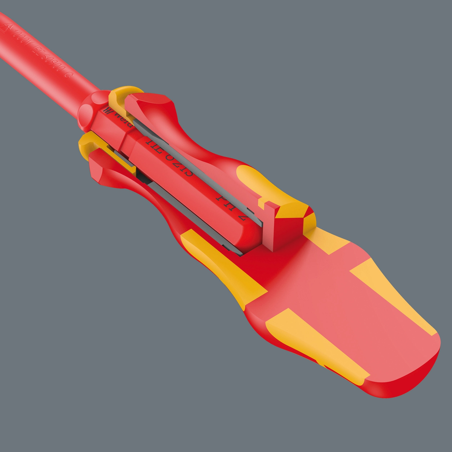 English name:Screwdriver SoftFinish electric Tiêu chuẩnĐược thử nghiệm theo IEC 60900.Ứng dụng Đối với công việc trong khu vực của các bộ phận sống lên đến 1.000 V AC. Size: 2,5 mm Chiều dài: 179