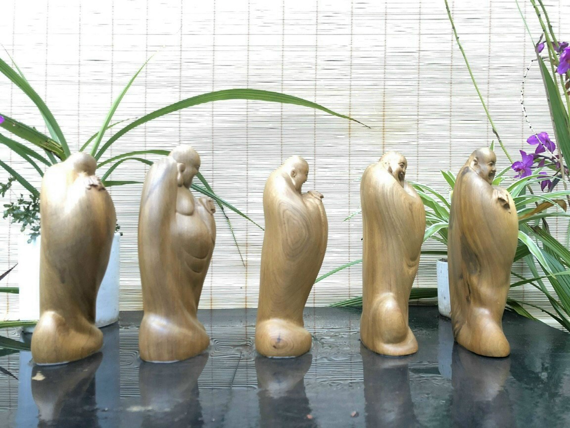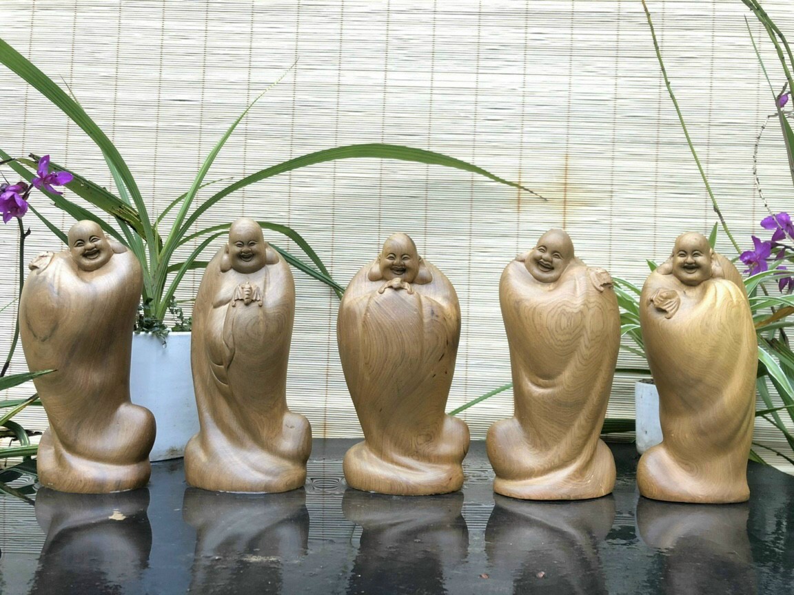 ✨Bộ tượng phật ngũ phúc bằng gỗ bách xanh thơm nức kt 20×11×7cmnh kt cao 20×11×7cm