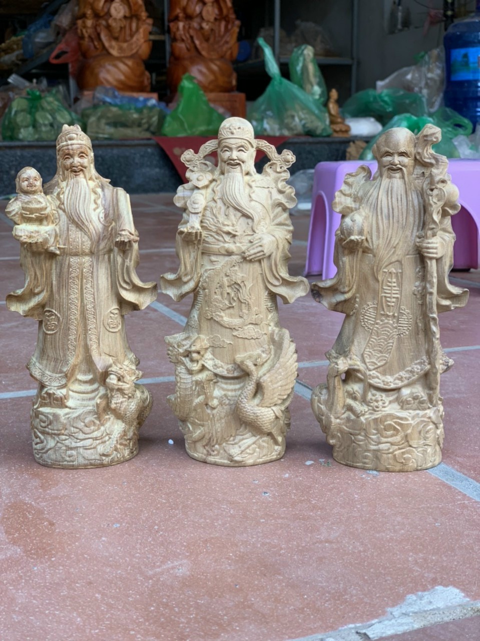 ✨Bộ tượng phật tam đa phúc lộc thọ mẫu mới bằng gỗ bách xanh thơm nức kt cao 20×6×9cm