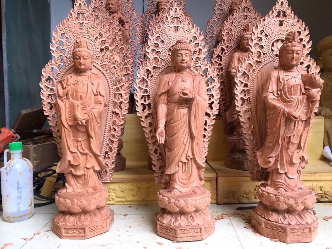 Tây Phương Tam Thánh Phật gỗ Hương liền khối #tuongphat #tayphuongtamthanh