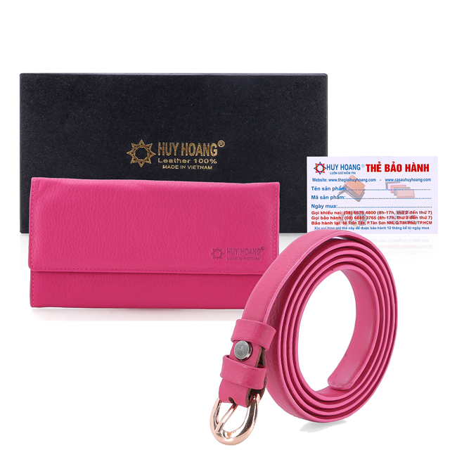 - Tên sản phẩm: Bộ Ví nữ và Thắt lưng nữ Huy Hoàng da bò màu hồng-HP3128-HP5132