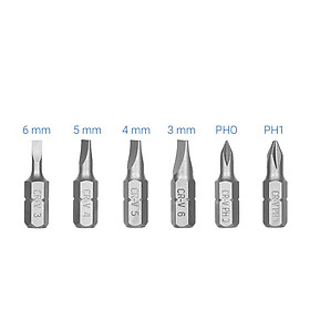 • 12 cái đầu vít (6,35x25mm) : SL: 3, 4, 5, 6 mm
