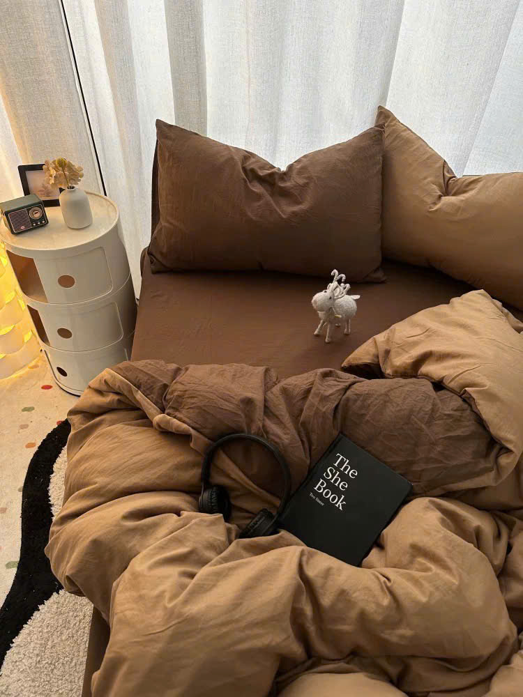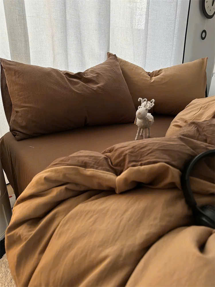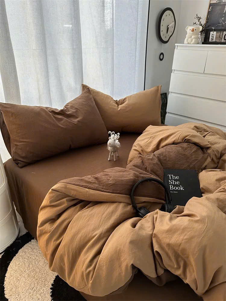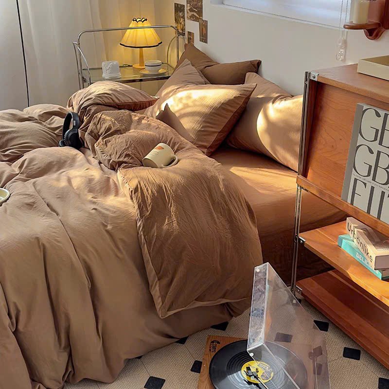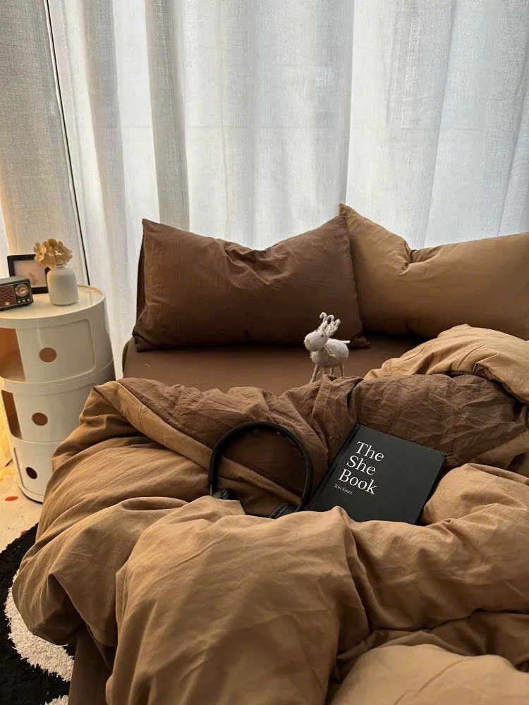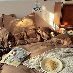 ✨Bộ vỏ chăn ga gối cotton tici LIDACO notag - Full nâu