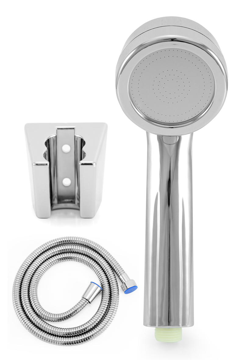 Bộ sản phẩm gồm: 01 thân vòi sen lạnh , 01 nắp chụp chân sen, 01 tay sen tăng áp, 01 dây sen tắm Inox dài 1.5 mét, 01 gác tay sen & ốc vít và