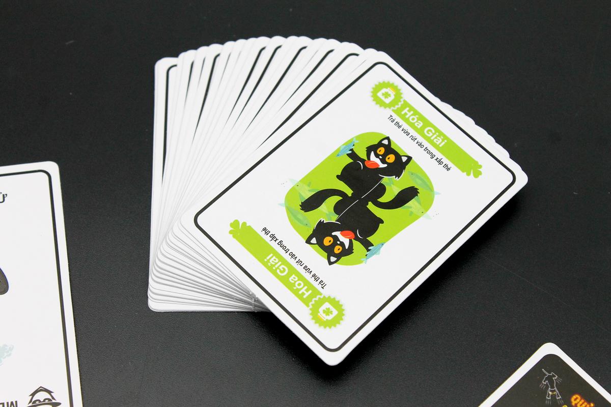 Mua tại TiktokBoardgame Mèo Cuồng Nộ - Liên Hiệp Thành Hướng dẫn cách chơi: Các bạn sẽ có 1 bộ chứa các thẻ khác nhau. Chồng thẻ sẽ được đặt úp ở giữa và người chơi sẽ lần lượt rút từng thẻ có nội dung và yêu cầu khác nhau cho đến khi người có 1 người rút phải thẻ QUỶ MIÊU Nếu không có thẻ HÓA GIẢI người này sẽ bị “Nhập Diệt” và rời cuộc chơi. Trò chơi tiếp tục cho đến khi còn 1 người duy nhất sống sót là người thắng cuộc