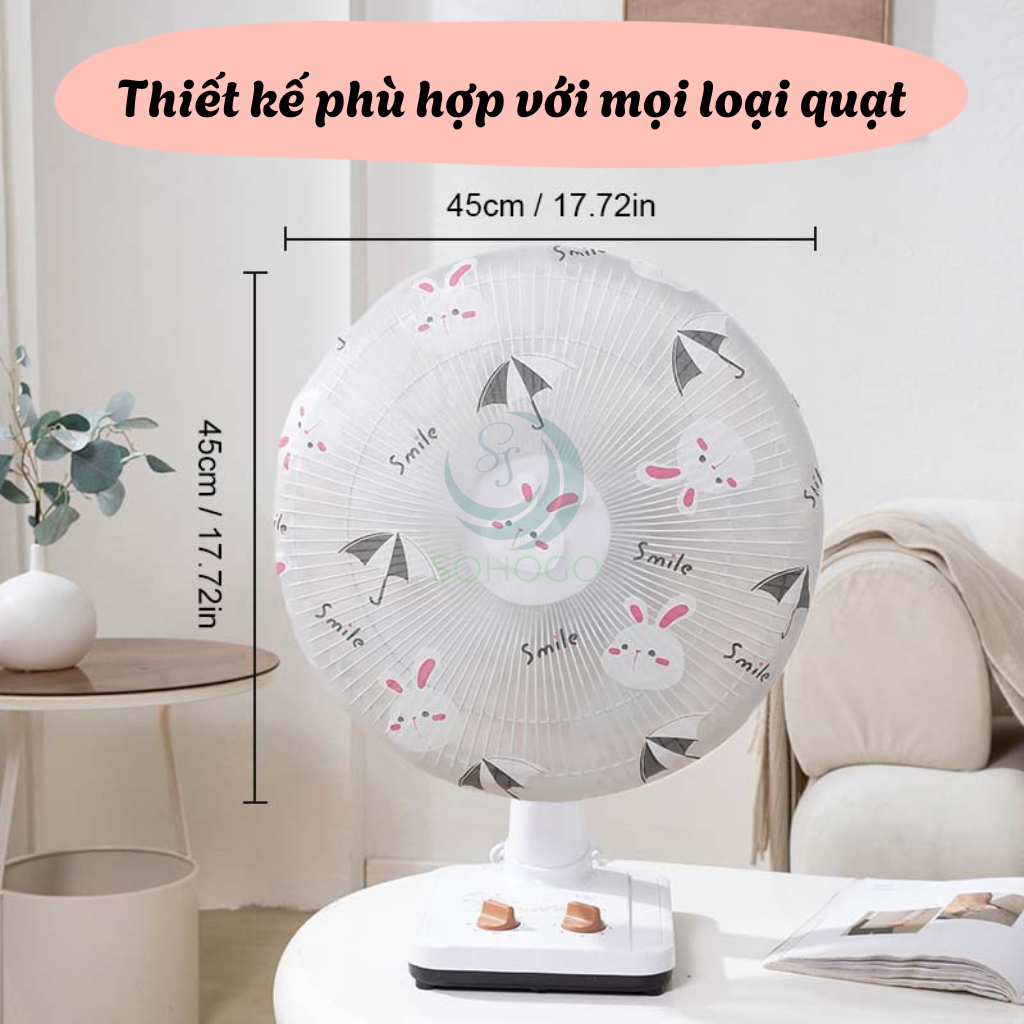 Mua tại TiktokMô tả chi tiết sản phẩm: Bọc quạt với chất liệu vải lưới thoáng khí, thiết kế hình tròn vừa vặn với hầu hết các loại quạt đứng hoặc quạt bàn có đường kính khoảng 45cm. Họa tiết dễ thương (mèo, cá, voi, khủng long...) không chỉ giúp bảo vệ lồng quạt khỏi bụi bẩn mà còn tăng tính thẩm mỹ cho không gian sống. Sản phẩm dễ dàng tháo lắp, giặt giũ và tái sử dụng. Ưu điểm nổi bật: