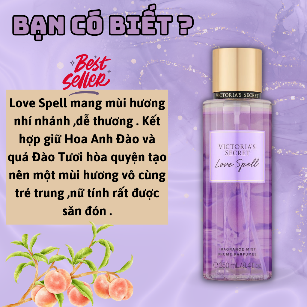 Mua tại TiktokBody Mist Victoria Secret Chính Hãng Love Spell, Xịt Thơm Body Toàn Thân Hương Nước Hoa 250ml