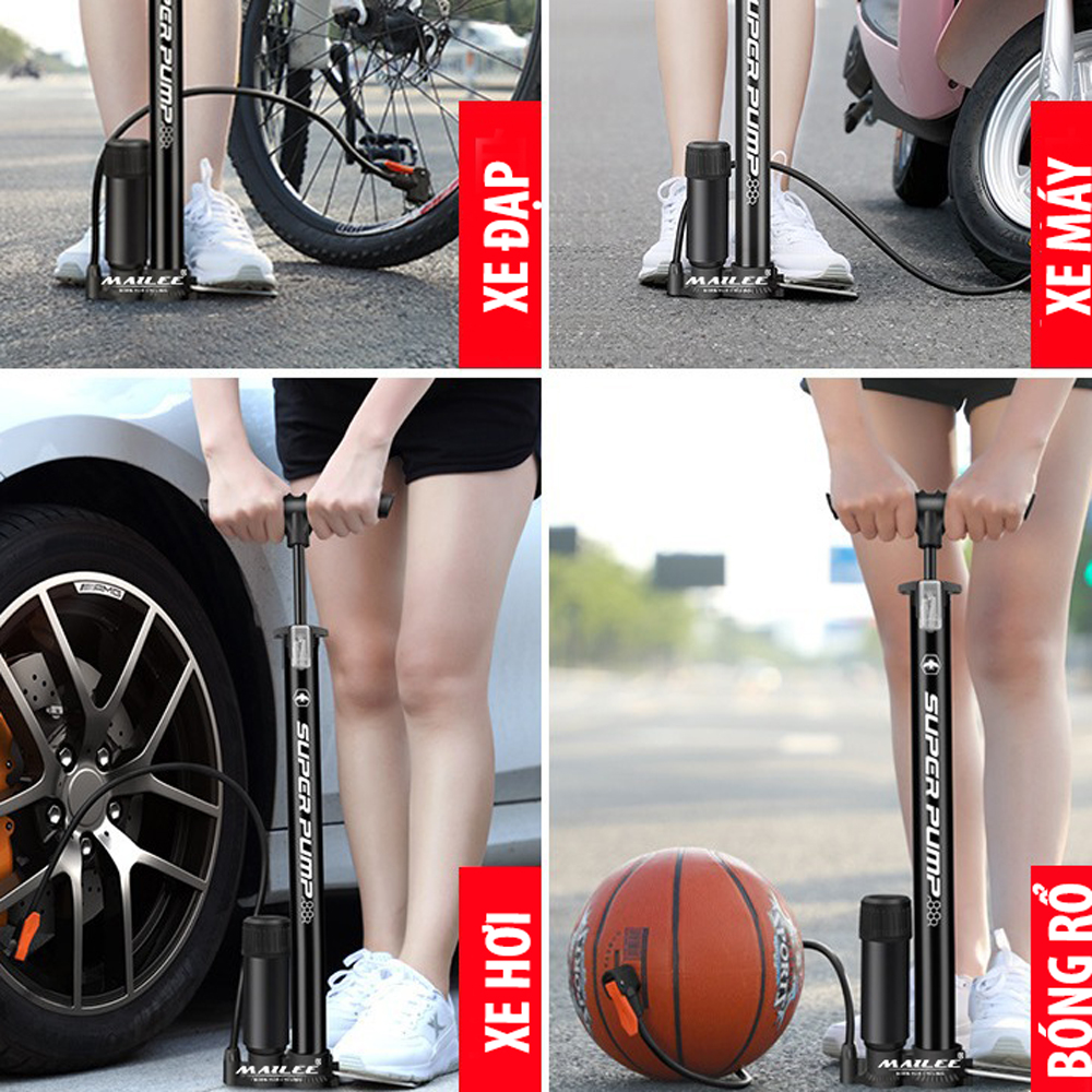 bơm đạp chân dùng bơm xe máy bơm xe đạp với các đầu van đa năng ĐẶC ĐIỂM SẢN PHẨM: - Để sàn bơm chân, dễ vận hành; - Thùng và trục hợp kim nhôm;