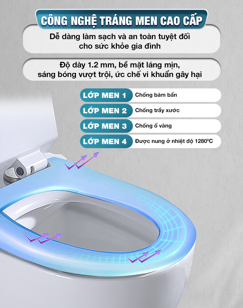 - Công nghệ FFC hiện đại, vật liệu từ cao lanh chất lượng cao - Nhiệt độ nung: 1280oC - kết tinh chất sứ bền bỉ, chịu trọng tải lên tới 400kg - Lớp men Diamond Nano Ceramic