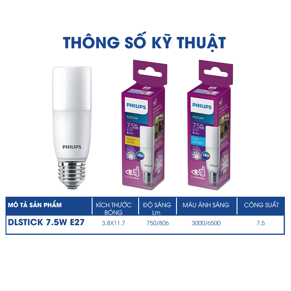 ✨Bóng đèn Philips LED Stick, bảo vệ mắt (01 bóng)
