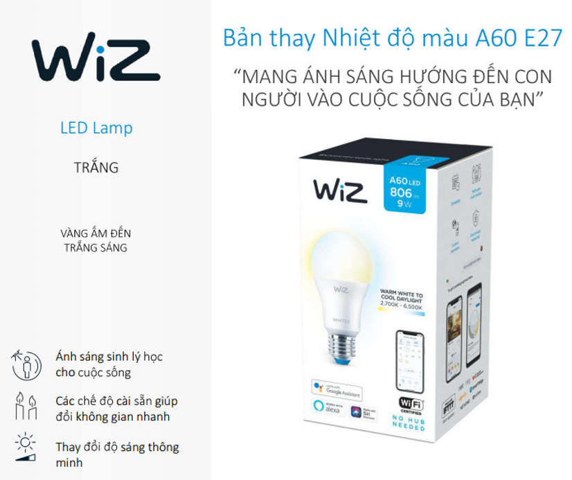 Mua tại TiktokWIZ bóng đèn thay đổi nhiệt độ màu " Mang ánh sáng hướng đến con người vào cuộc sống của bạn" Wiz LED LAMP với thiết kế bóng đèn màu trắng và thay đổi được