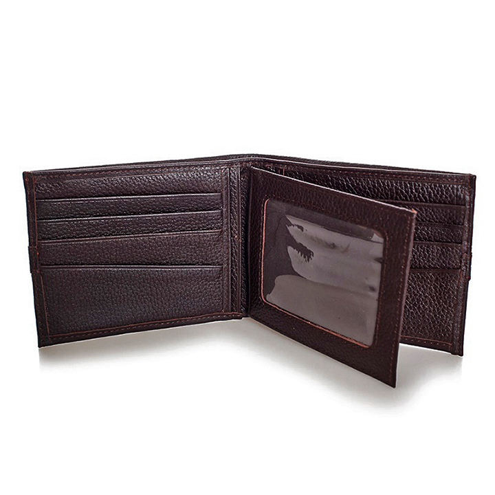 - Chất liệu: Da bò thật 100%. - Kích thước: 12,5 x 10 cm (Gấp lại); 20 x 10 cm (Mở ra).