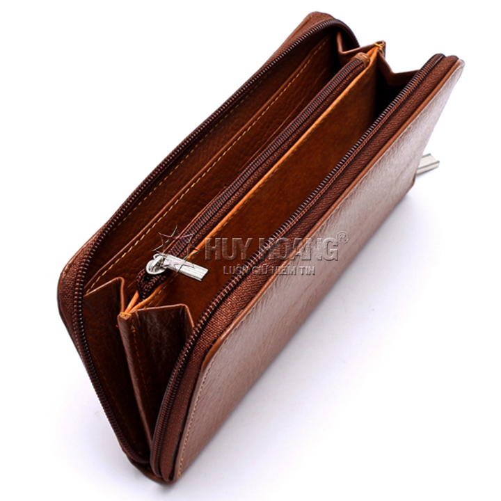 Ví/Bóp nữ da bò Huy Hoàng cao cấp 1 khóa màu nâu 3143