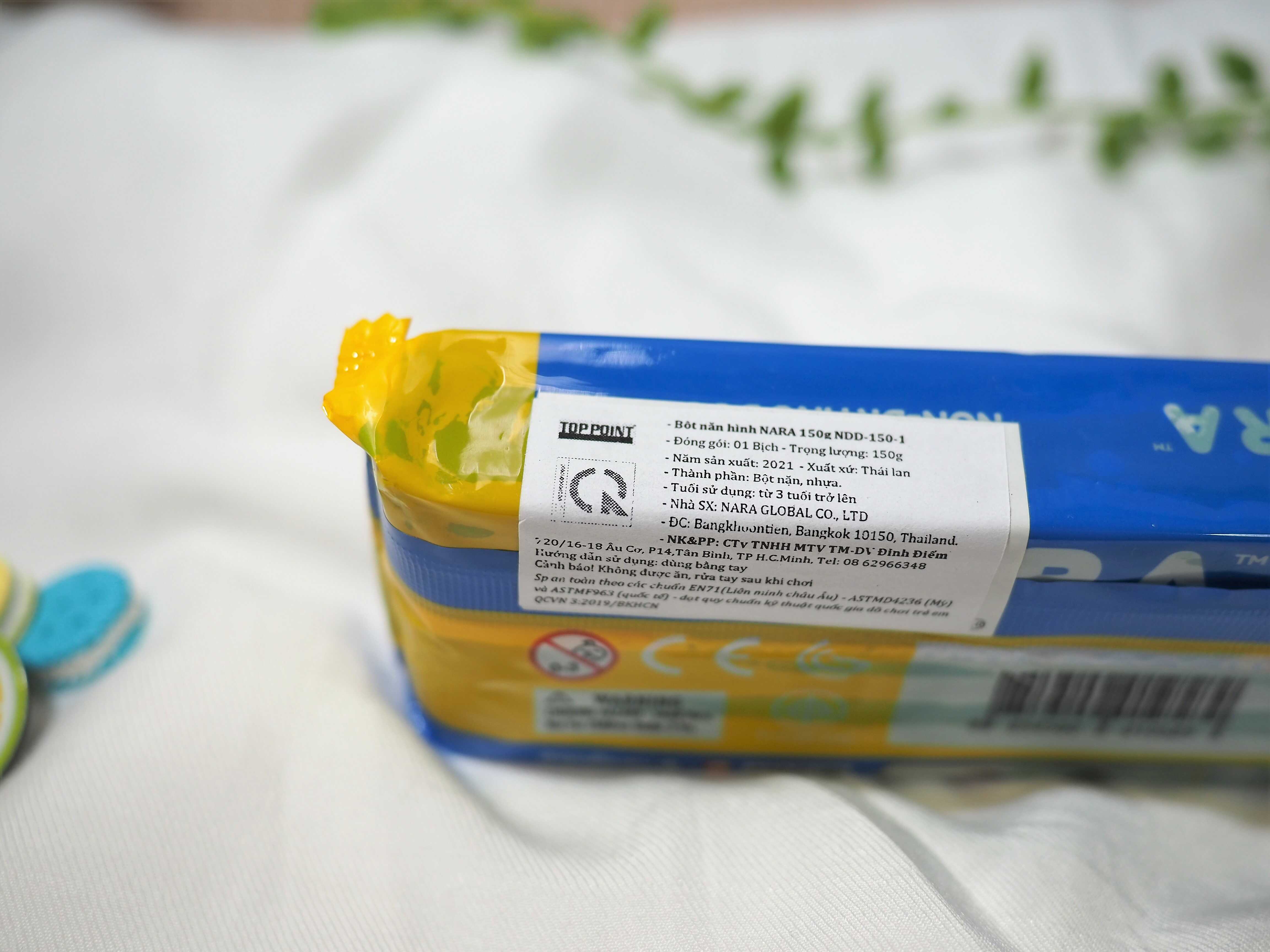 - Chất liệu vô cùng mềm mại, cho bé thỏa thích tạo bất cứ hình thù nào. Từ đó, giúp bé phát triển khả năng tượng tưởng và sáng tạo. THÔNG TIN SẢN PHẨM BỘT NẶN KHÔNG KHÔ NARA
