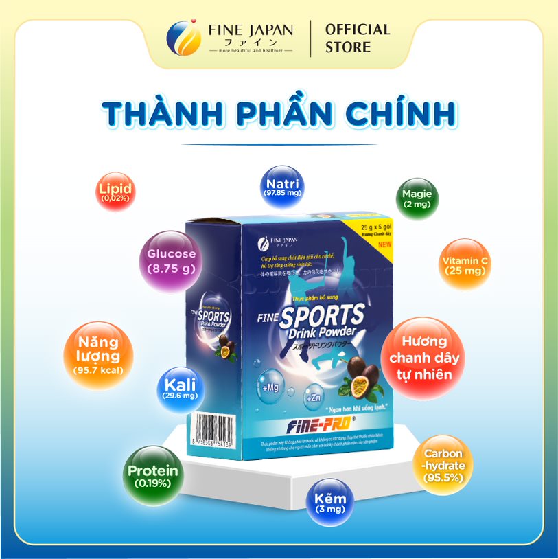 ✨Bột pha nước điện giải Sport Drink FINE JAPAN hương chanh dây hộp 5 gói