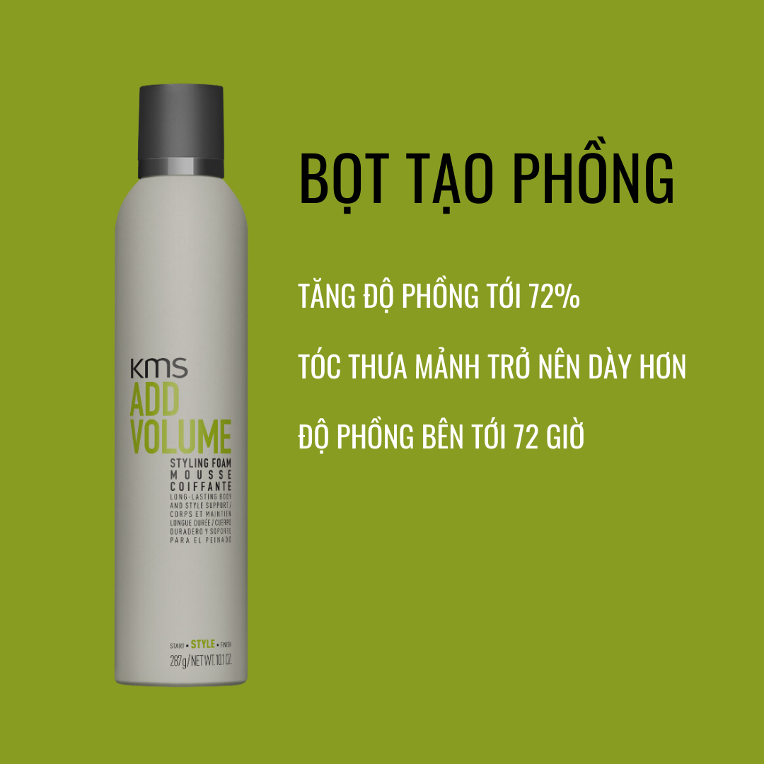 Bọt Tạo Phồng Tóc Goldwell KMS Addvolume Tạo Phồng Nhanh, Không Bết, Giữ Độ Phồng Lên Đến 72h - 300ml - Phù hợp với: Mọi loại tóc CÔNG DỤNG - Giúp tóc bồng bềnh hơn