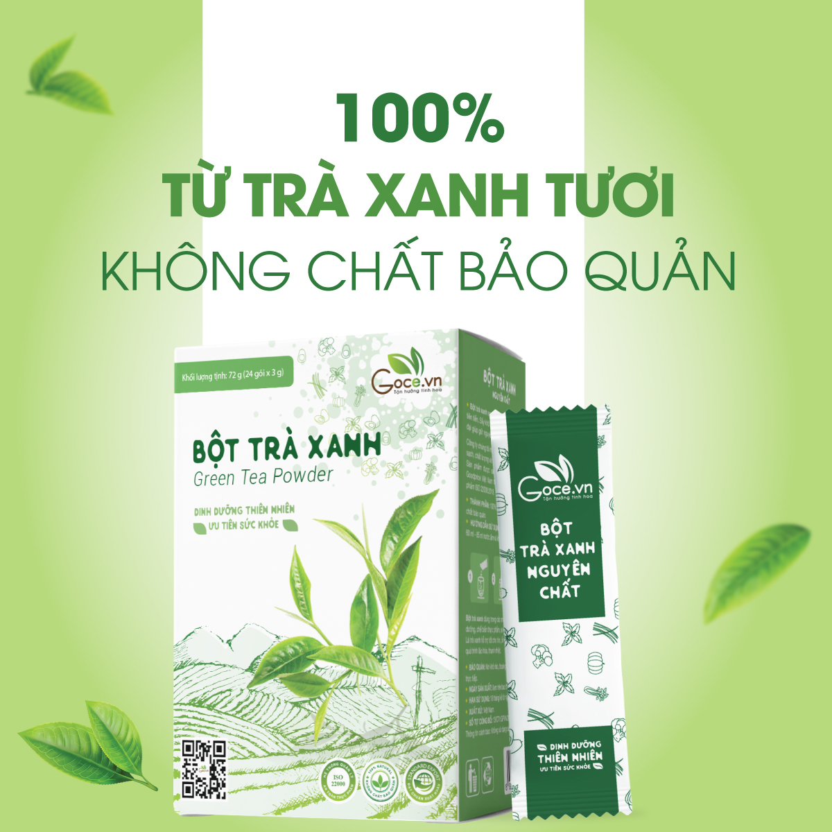 ✨Bột trà xanh nguyên chất Goce - 72g (24 gói x 3g)