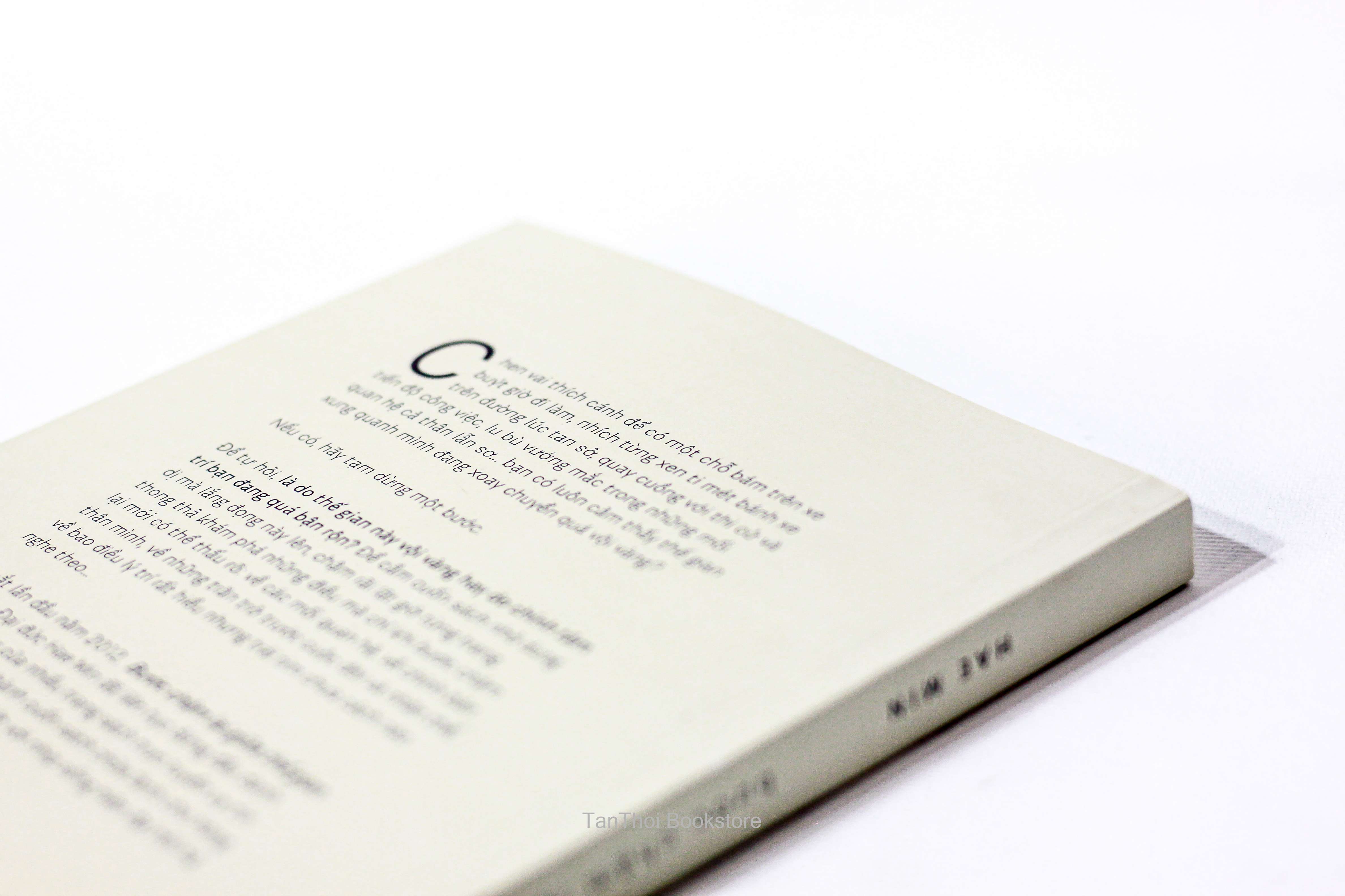 Để tự hỏi, là do thế gian này vội vàng hay do chính tâm trí bạn đang quá bận rộn? Để cầm cuốn sách nhỏ dung dị mà lắng đọng này lên, chậm rãi lật giở từng trang, thong thả khám phá những điều mà chỉ khi bước chậm lại mới có thể thấu rõ: về các mối quan hệ, về chính bản thân mình, về những trăn trở trước cuộc đời và nhân thế, về bao điều lý trí rất hiểu nhưng trái tim chưa cách nào nghe theo…