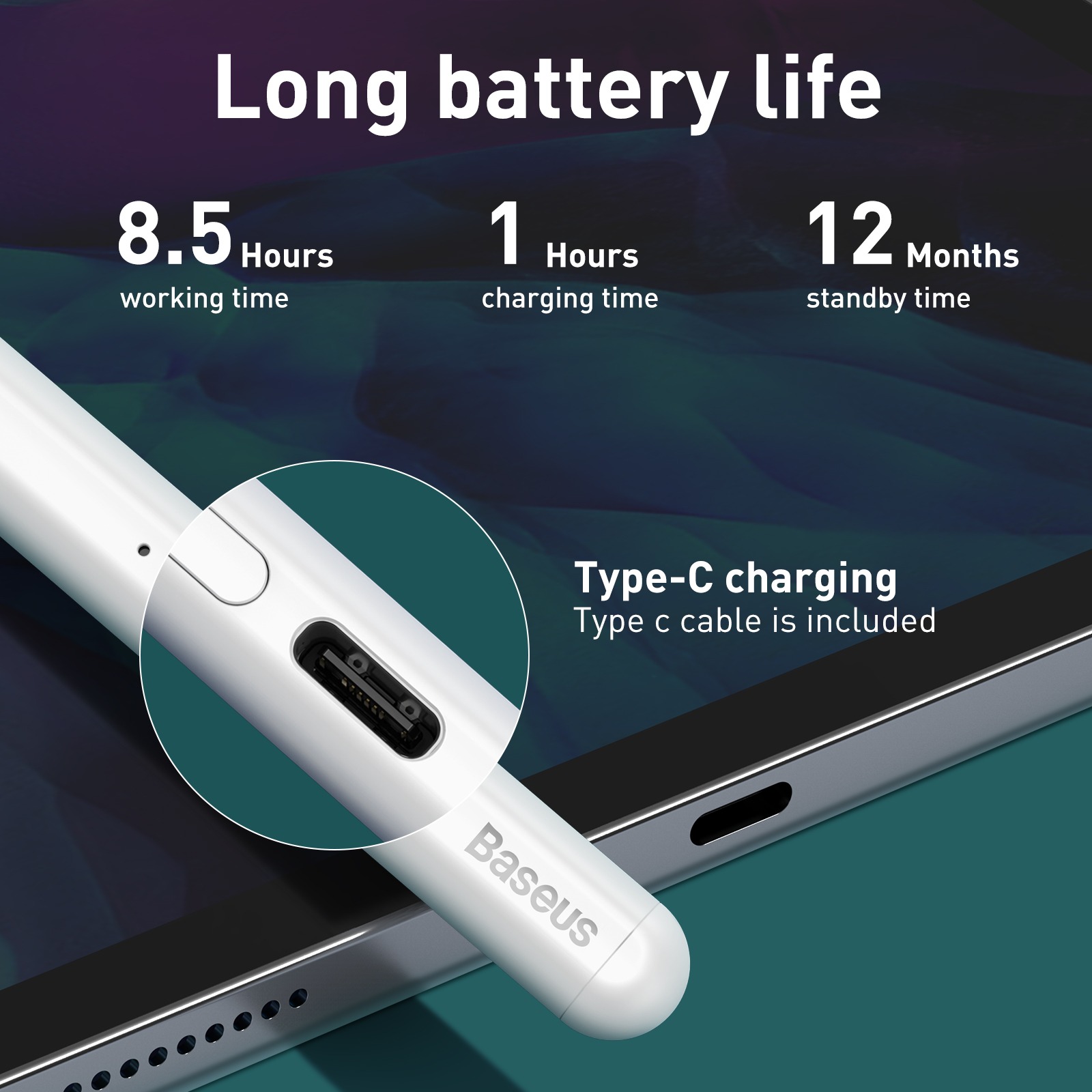 - Name: Baseus Smooth Writing Capacitive Stylus (Active + Passive version) White (Containing universal Type-C 3A 0.5m USB wire in white1, Active tip1, Passive tip cap*1)
