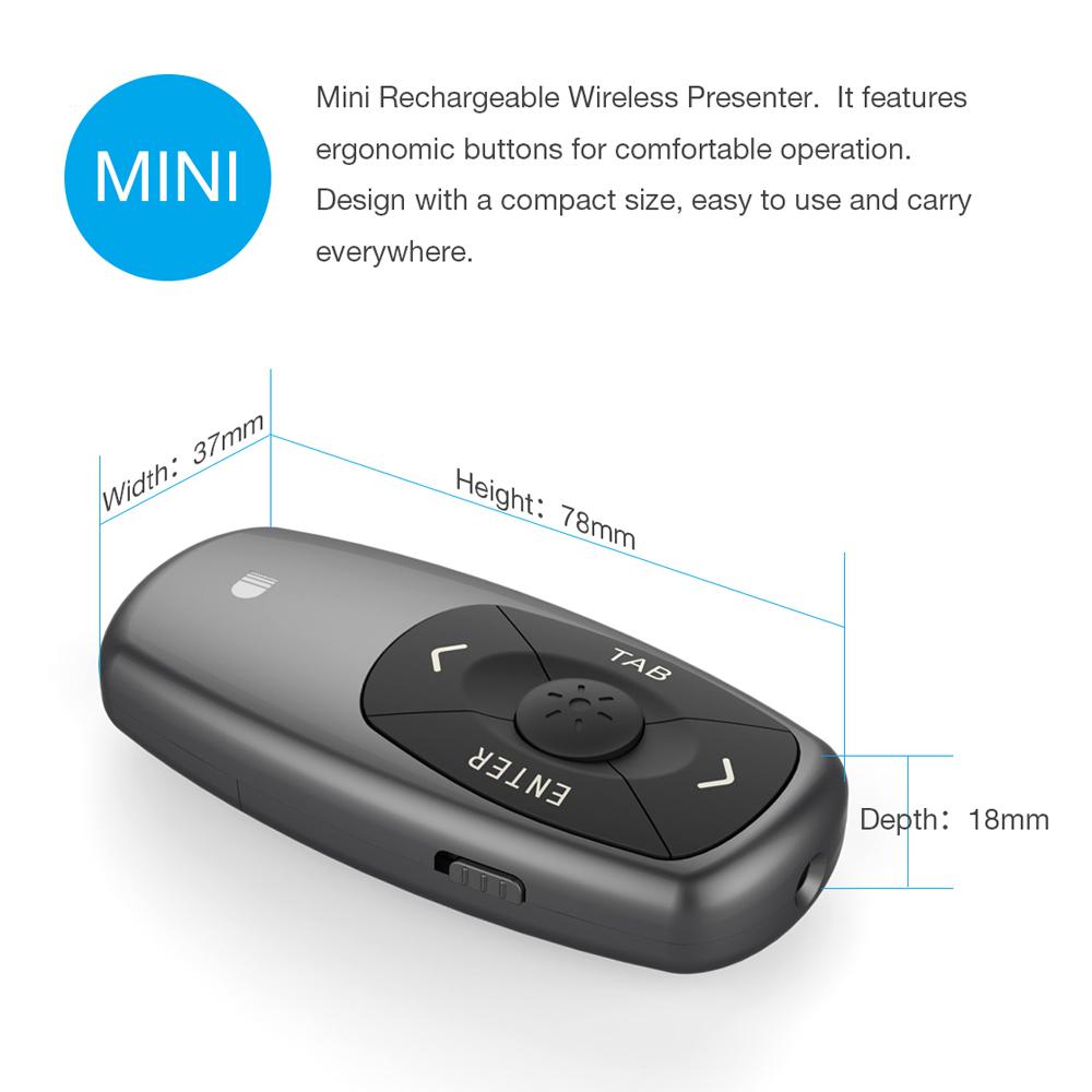 Can use it plug and play, no driver needed. The USB receiver is located at the back of the Presenter. Design with a compact size, easy to use and carry everywhere.
