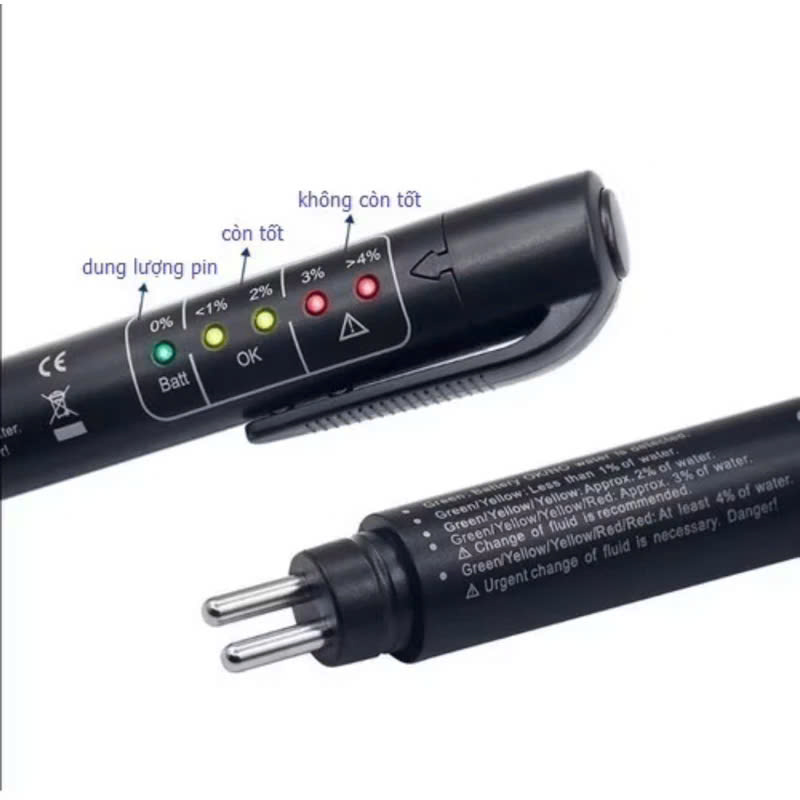 Đèn Báo Chỉ Số LED Tiện Ích: Với đèn báo chỉ số LED thông minh, bút thử dầu này cung cấp thông tin chính xác và dễ hiểu về mức dầu phanh. Mỗi chỉ số sáng lên sẽ là một tín hiệu cho biết tình trạng cụ thể, giúp bạn nhanh chóng nhận biết và xử lý vấn đề.