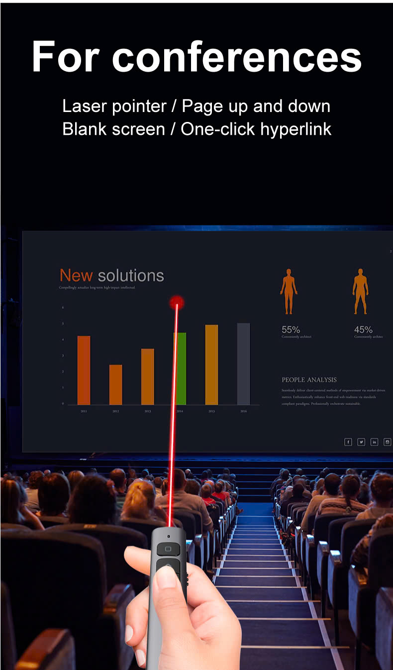 Laser xanh: Người dẫn chương trình không dây với tia laser màu xanh lá cây hiển thị tốt hơn trên nhiều nền khác nhau, ánh sáng xanh lục tươi sáng giúp bạn chỉ rõ mọi thứ