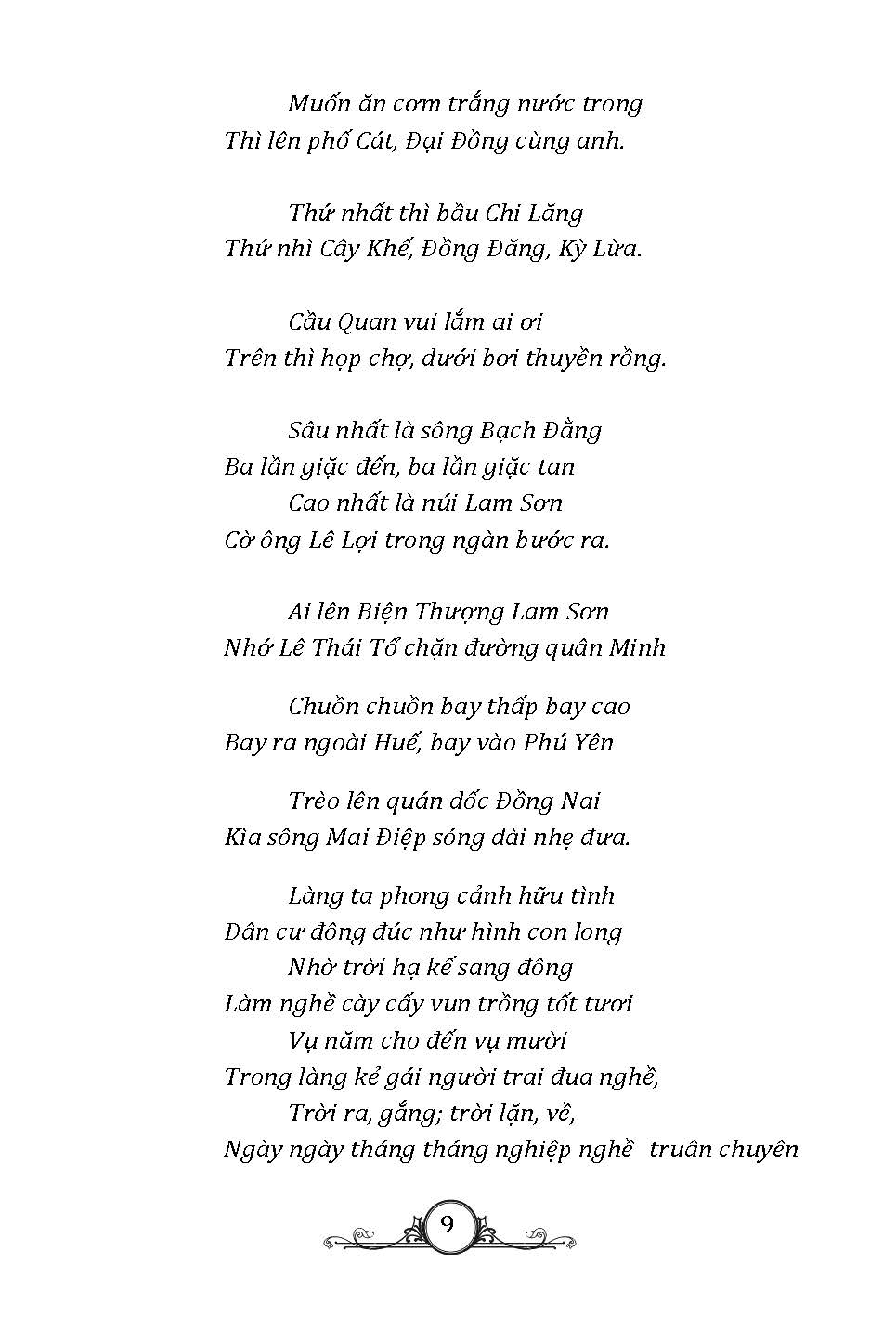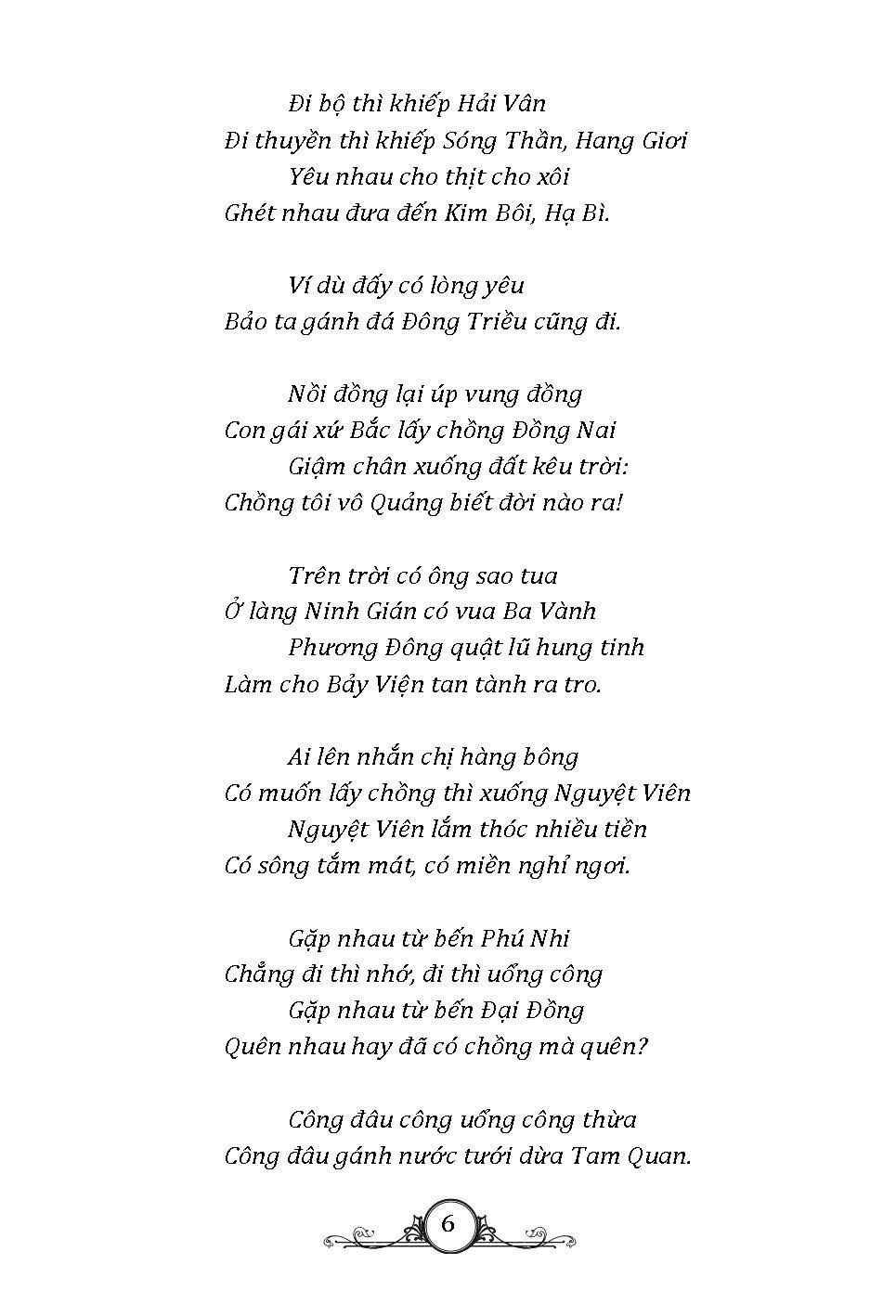 Tuyển tập thơ ca dân gian Việt Nam với những câu hát phổ biến dễ nhớ, dễ thuộc, chứa đựng những giá trị và ý nghĩa sâu sắc về tình yêu quê hương, đất nước,