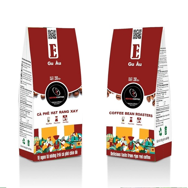 Thông Tin Sản Phẩm: Thương Hiệu: ROVINA Xuất Xứ: Việt Nam Trọng lượng tịnh: 250g Hạn sử dụng:1 năm Xuất xứ: Việt Nam Độ ẩm: ≤ 5 % Hàm lượng caffein:>1,5% MÔ TẢ SẢN PHẨM Được chế biến từ hạt Arabica Cầu Đất và Robusta daklak, có mùi thơm quyến rũ, đậm đà và nước pha màu nâu cánh gián, mang lại những tách cà phê tuyệt hảo – Nhẹ Nhàng Trời Âu Cà phê Rovina Gu Âu mang đến cho người dùng 1 ly cà phê với mùi vị đặc trưng cân bằng giữa vị chua của hạt Arabica và vị đắng đậm của Robusta. Phù hợp với khách hàng thích uống cafe có mùi thơm quyến rũ, chua nhẹ. Đúng Gu nhẹ nhàng trời Âu. Cách Pha Cà Phê Phin Nhỏ Bước 1: Tráng phin qua nước nóng. Bước 2: Múc 20 gram cà phê cho vào phin rồi đặt lên ly/cốc. Bước 3: Rót chầm chậm 30ml nước vừa sôi lên khắp bề mặt cà phê. Bước 4: Sau 2 – 3 phút, khi bột cà phê đã hấp thụ hết nước và nở đều, bạn tiến hành nén nắp gài, châm thêm 50ml nước sôi rồi đậy nắp và chờ đợi. Bước 5: Khoảng 1 phút sau, cà phê sẽ bắt đầu nhỏ từng giọt xuống ly. Bạn đợi đến khi cafe nhỏ gần hết thì ấn chặt nắp gài để chiết xuất hết lượng cà phê còn lại. Bước 6: Kết quả bạn sẽ thu được khoảng 40 – 45ml nước cà phê. Bạn có thể cho thêm sữa đặc, đường hoặc đá vào khuấy đều rồi thưởng thức. tùy theo sở thích của Bạn